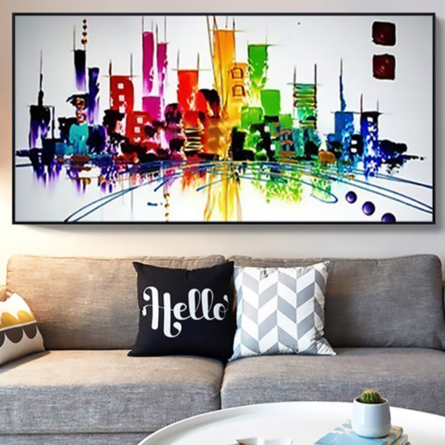 What do you wish for in the future? We certainly wish for more colors and art. This unique handmade artwork shows a futuristic, technicolor city from the year 2040. If all cities looked like this one, the future is bright!