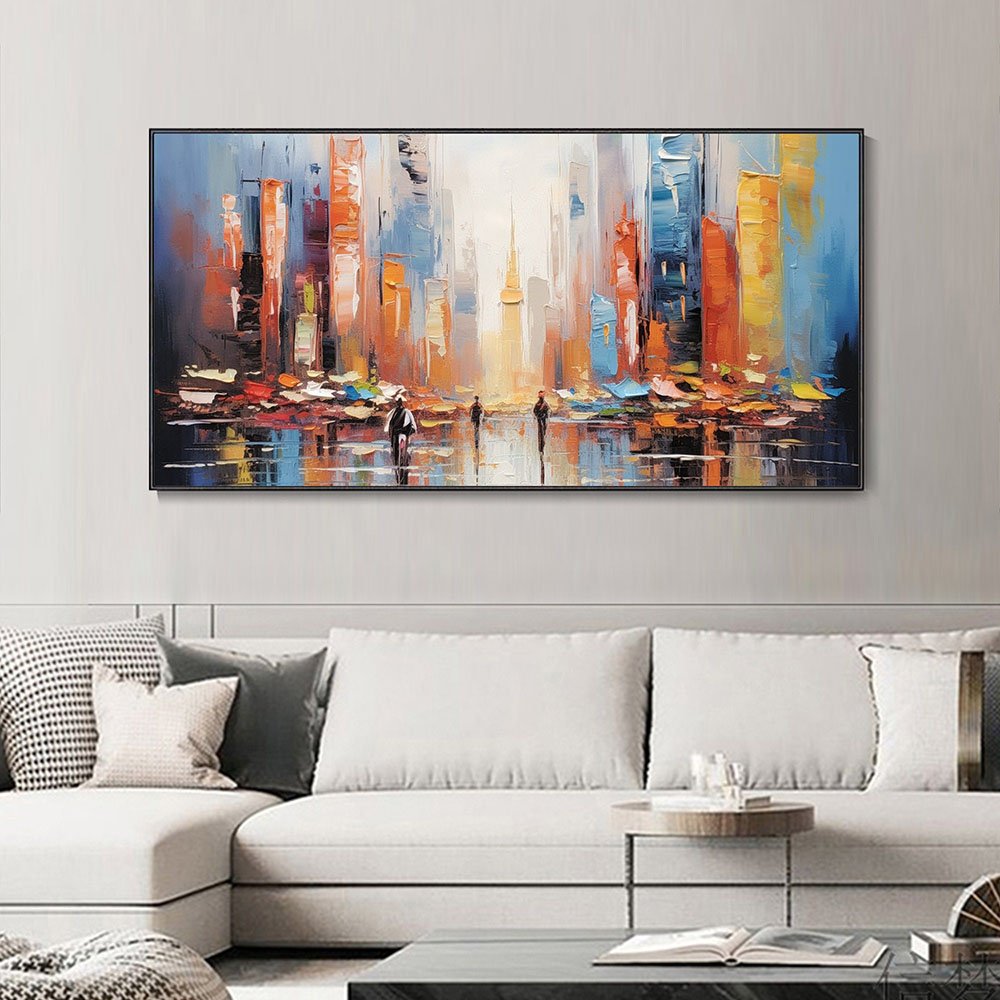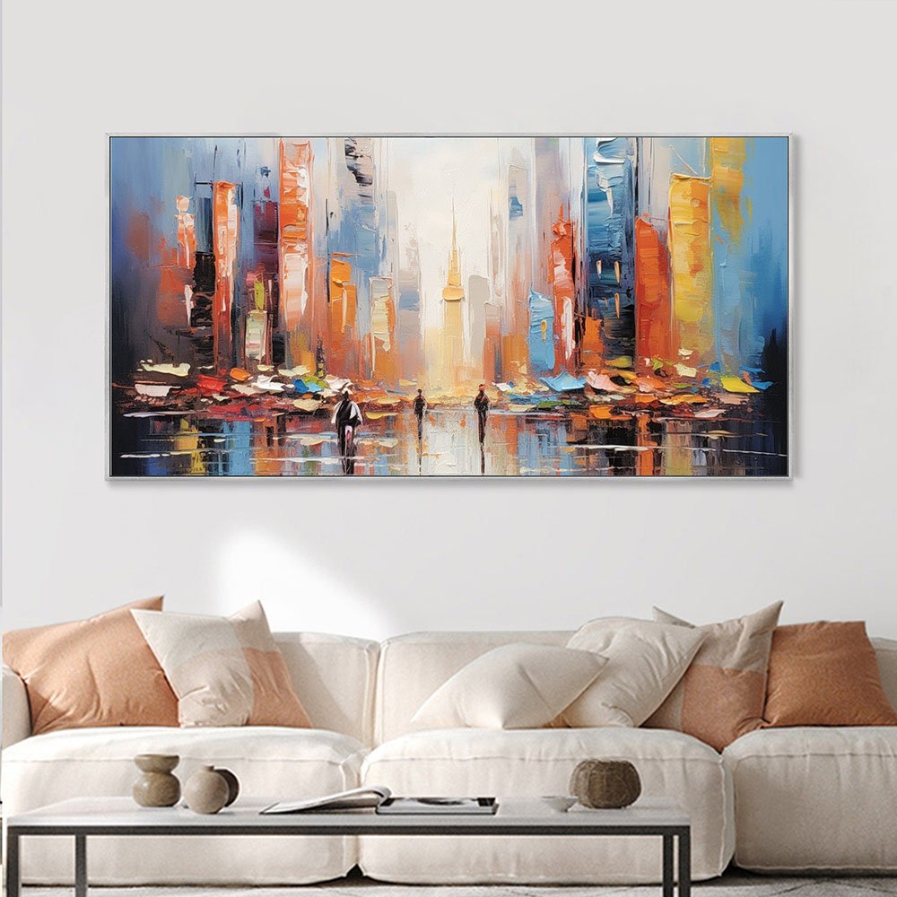 A New Future shines with the promise of what's to come. The vivid cityscape, with its bold colors and towering structures, embodies progress and potential. An ideal piece for those who dream big and aim high.