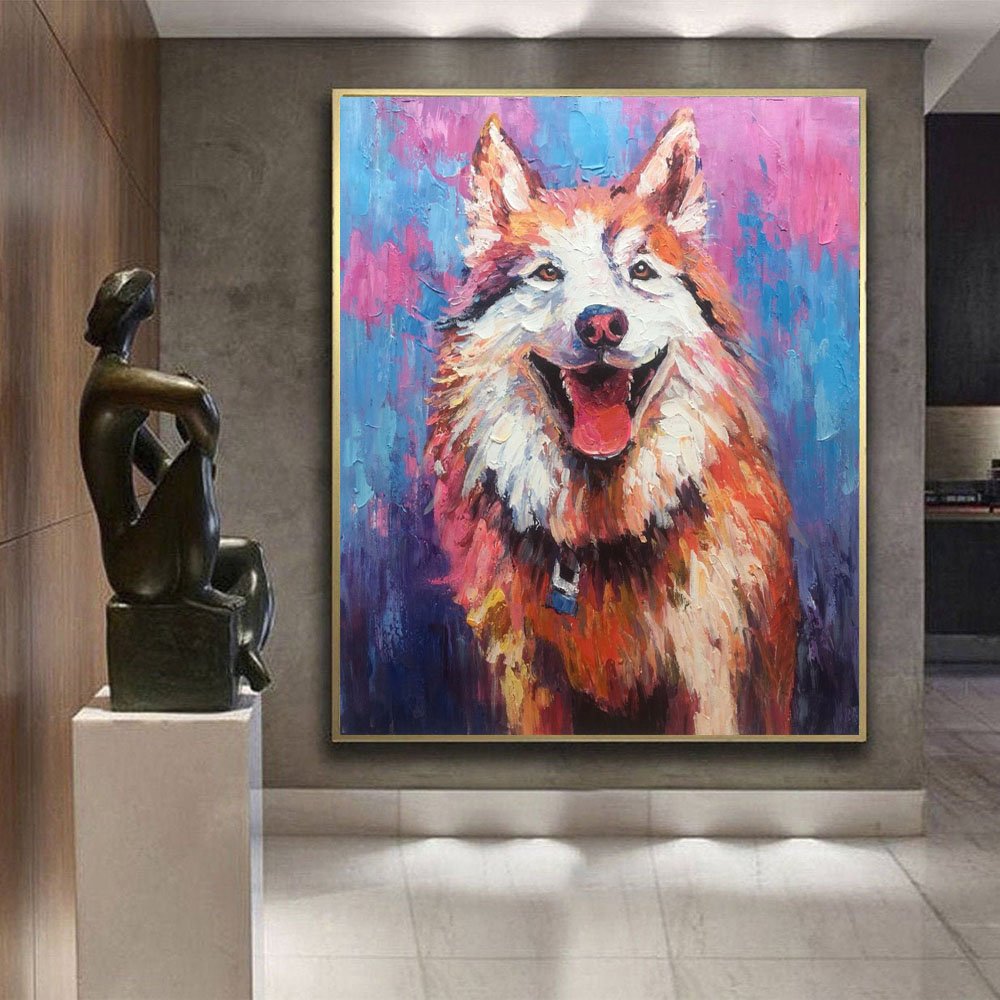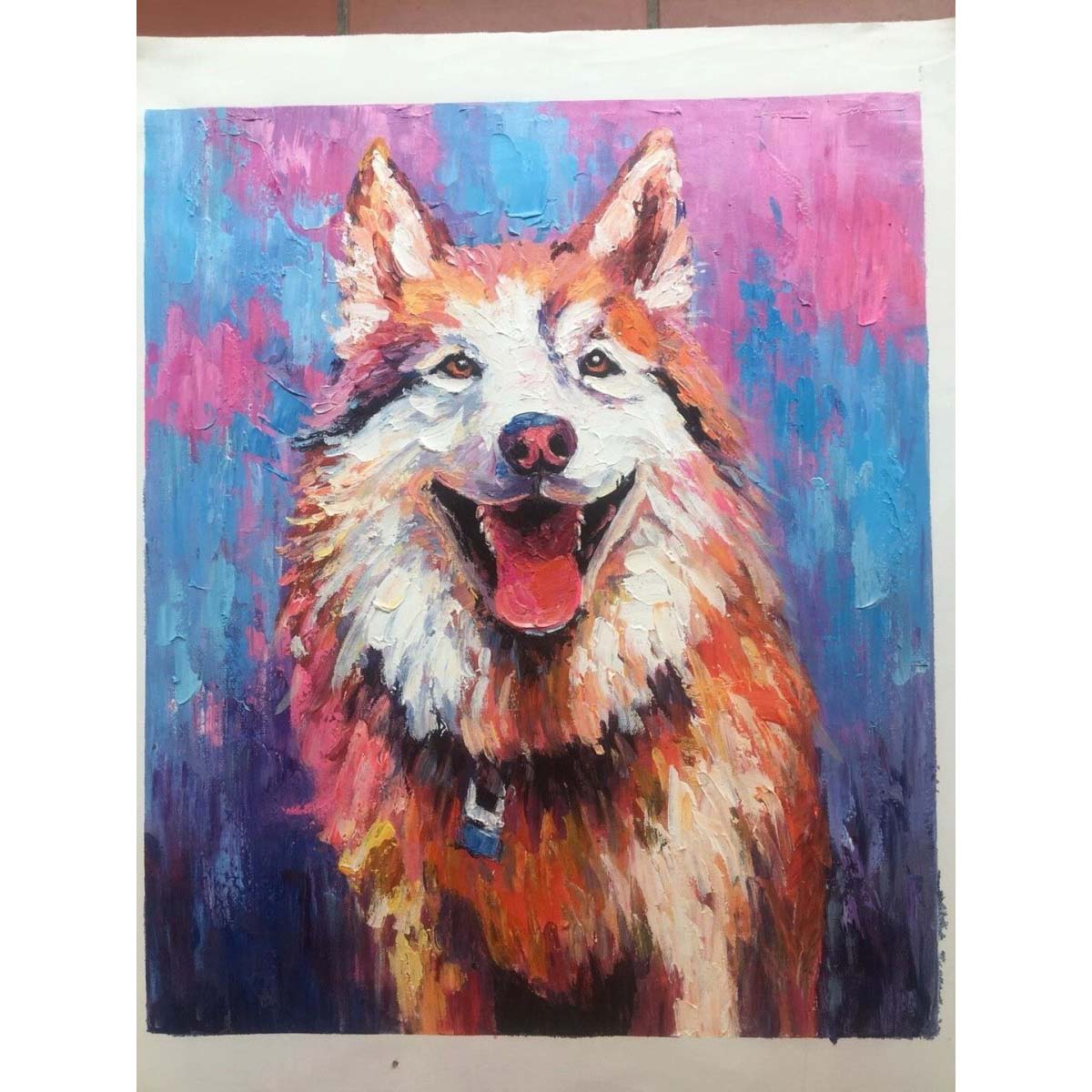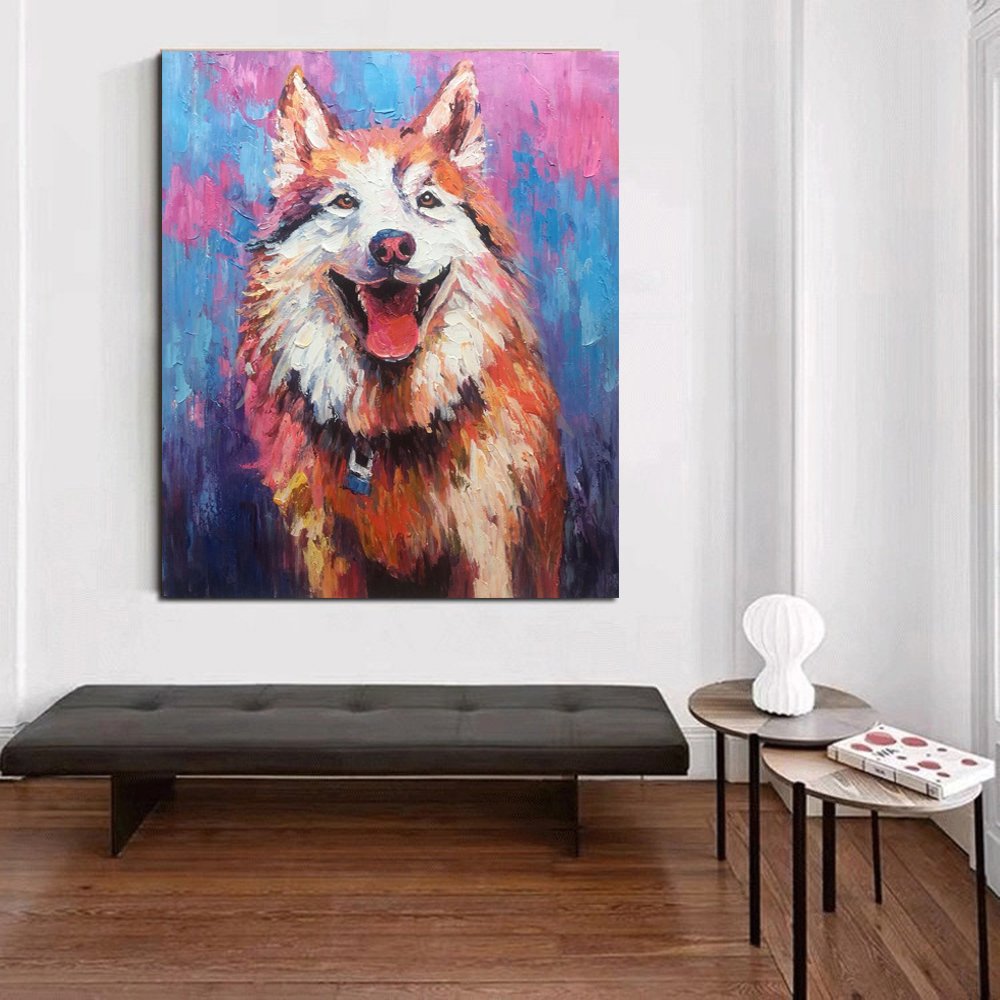 Meet Archie, the star of this vibrant painting, brightening the room with his expression. His smile suggests he’s just discovered his favorite human came home! Archie’s joy is contagious, spreading happiness to everyone who can see it!