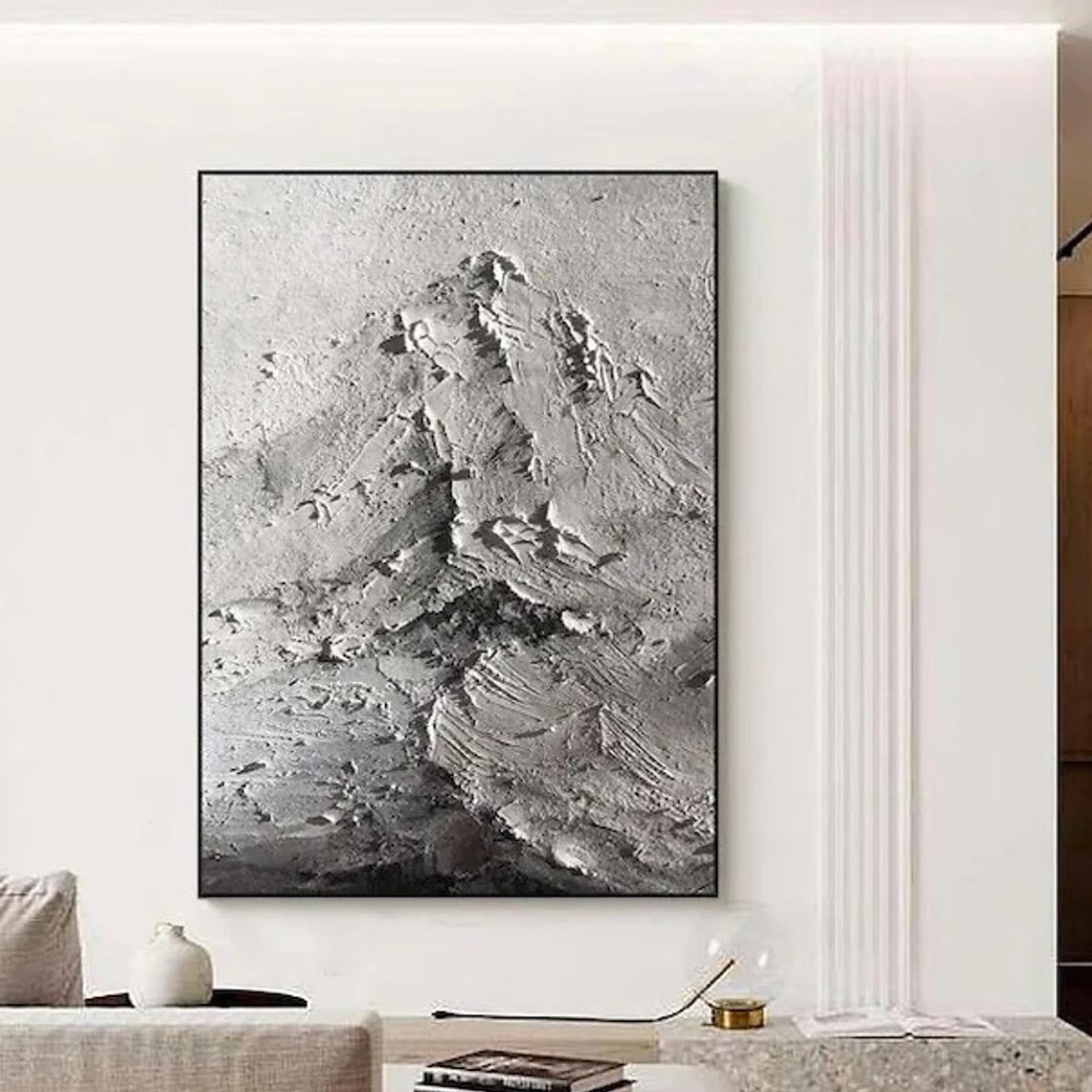 This artwork brings the quiet strength of a mountain range to your home, with textured layers and muted tones that evoke the passage of time. It’s a piece that adds a subtle yet powerful presence to any space.