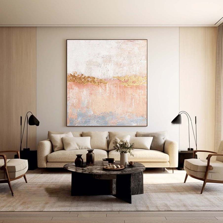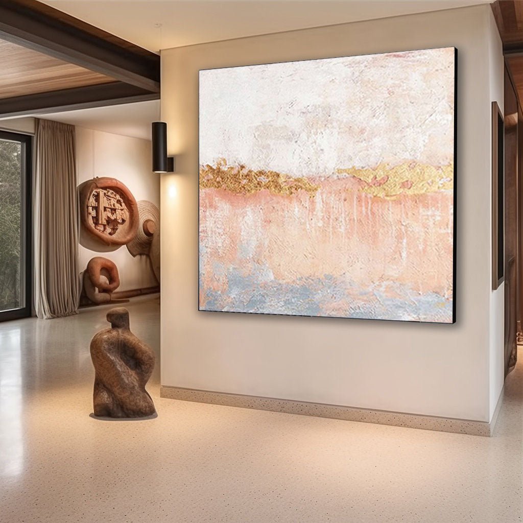 Bring the serene beauty of the coast into your home with Ashore. This stunning piece captures the soft pastels and golden hues of the shoreline, adding a touch of tranquility and elegance to any room.