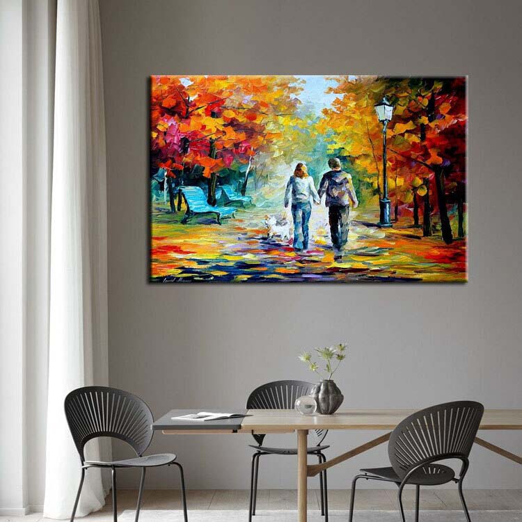 Inspired by the vibrant work of Leonid Afremov, this rich composition fills any room with bright colors. Step right into the welcoming canvas and start walking along in the most beautiful season of them all!