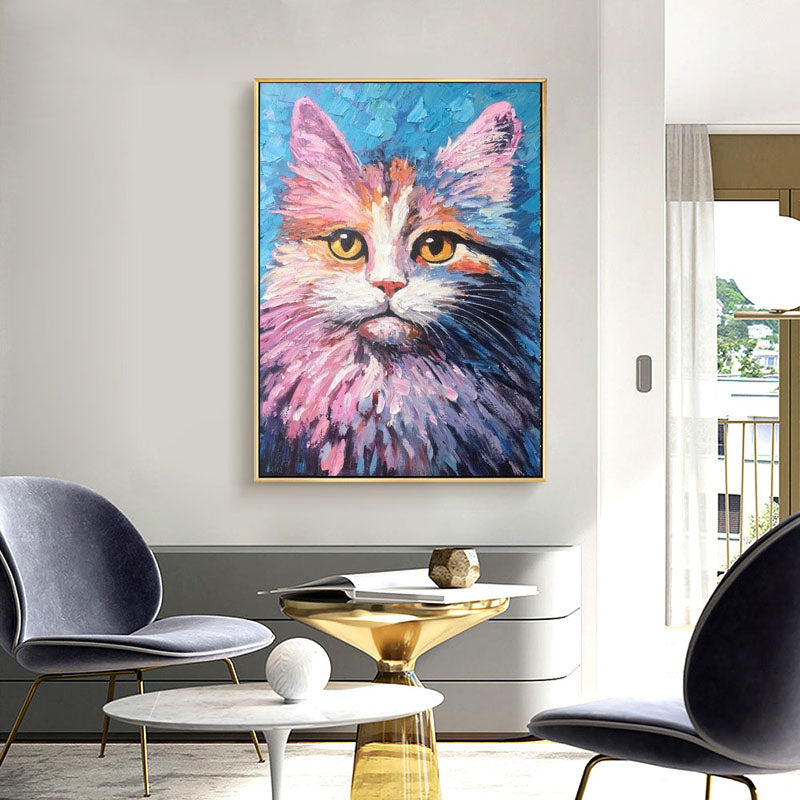 Isn't she just adorable? Meet 'Bella', a beautiful feline with lush fur and stunning eyes. Portrayed in a unique style, Bella really comes alive and brightens up the room!