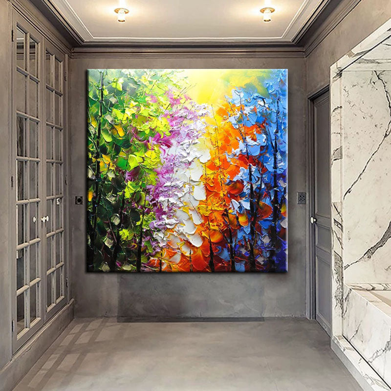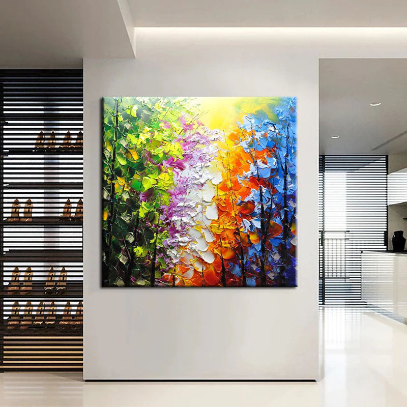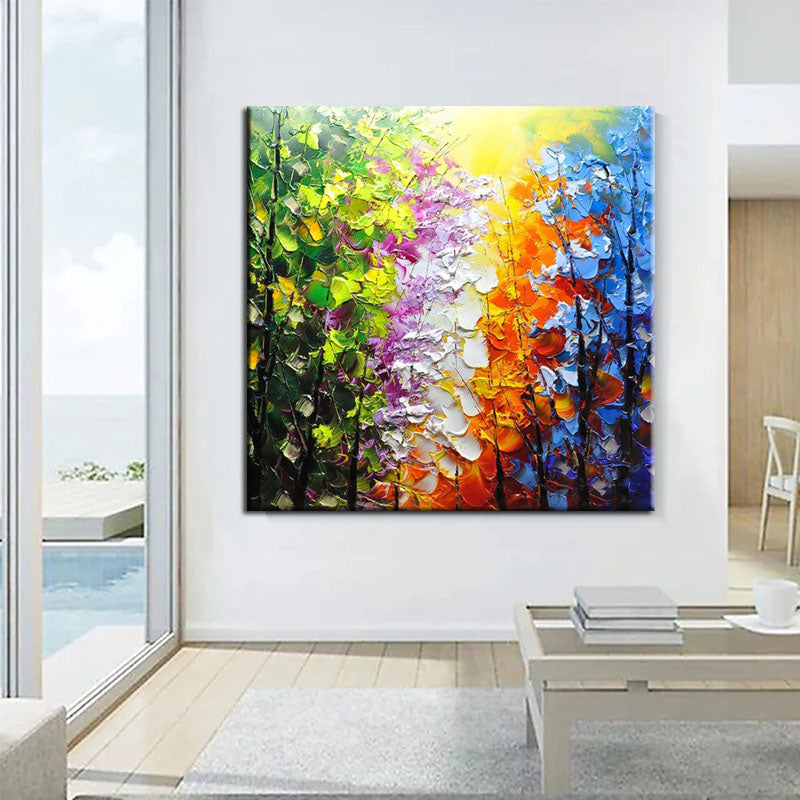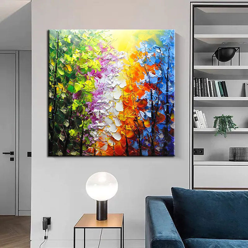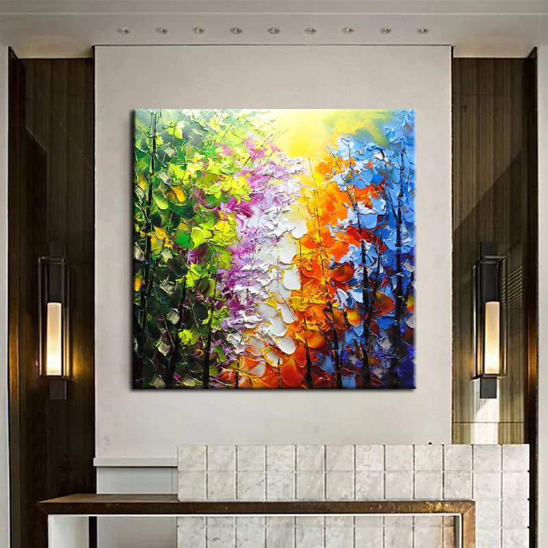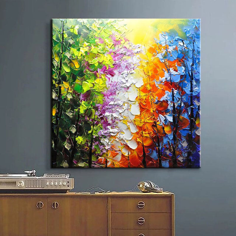 Belleview Park is a celebration of color and nature. This stunning painting, with its vivid hues and intricate details, brings the beauty and serenity of a park scene right into your living room.