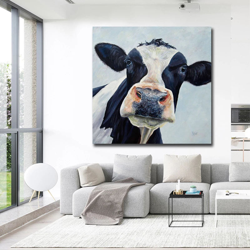 Look whose friendly face popped in to say hello! It is our furry friend 'Betsy'! With friendly eyes and beautiful details, this jolly cow will always put a smile on your face. Create a comical and rural atmosphere wherever you display this painting!