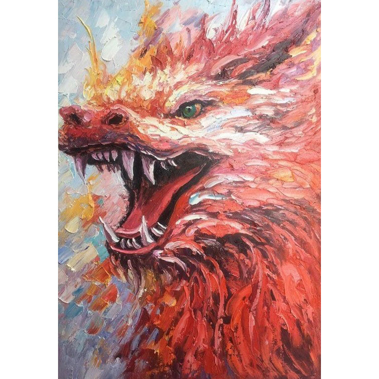 Let Blazewing set your décor ablaze. With its fiery palette and bold brushstrokes, this striking dragon artwork infuses any room with energy and intensity, making it a focal point anywhere!
