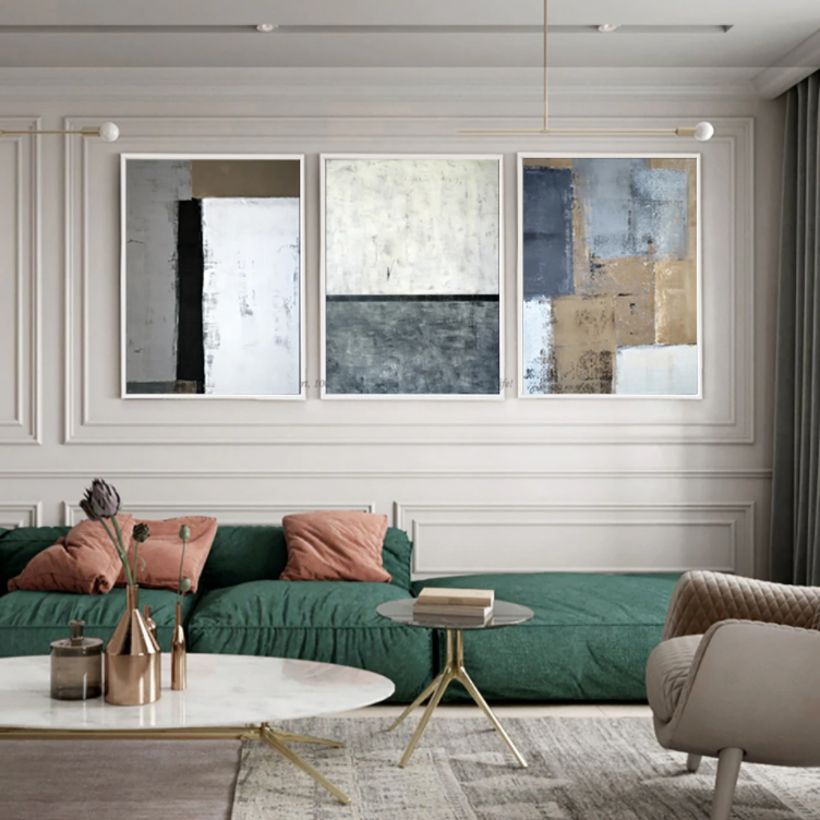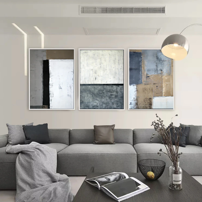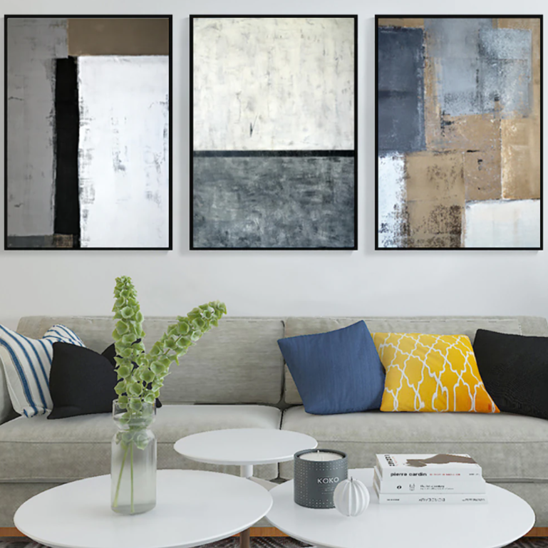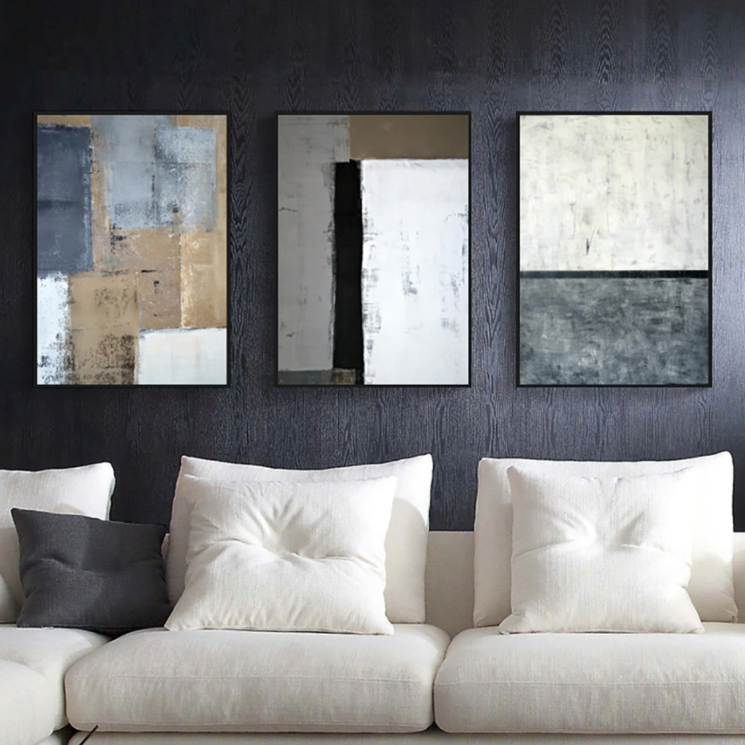 Brick is a trio canvas set with subtle, earthly colors. The abstract composition and the natural aesthetic make this a soothing addition for any type of home interior.
