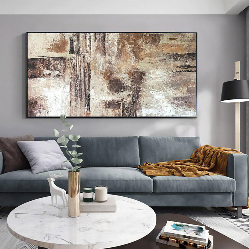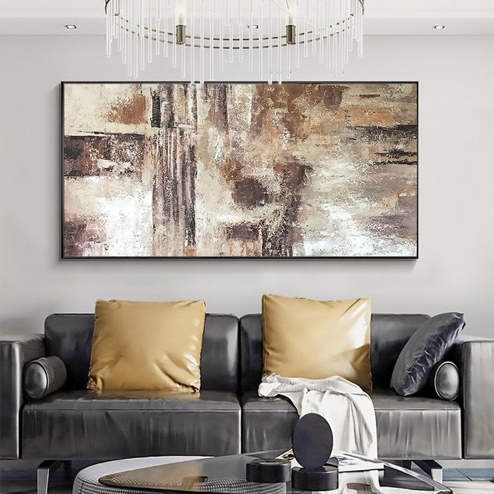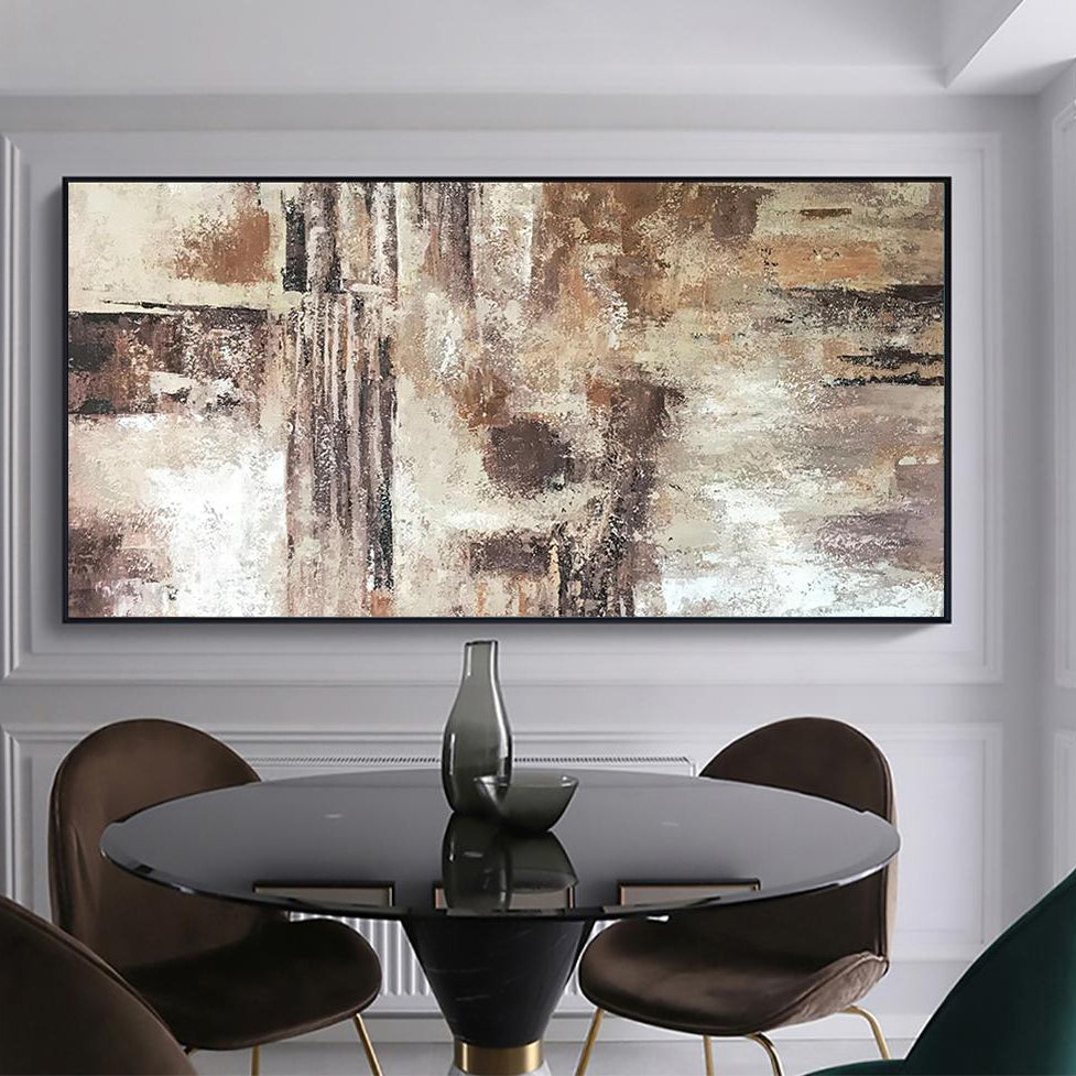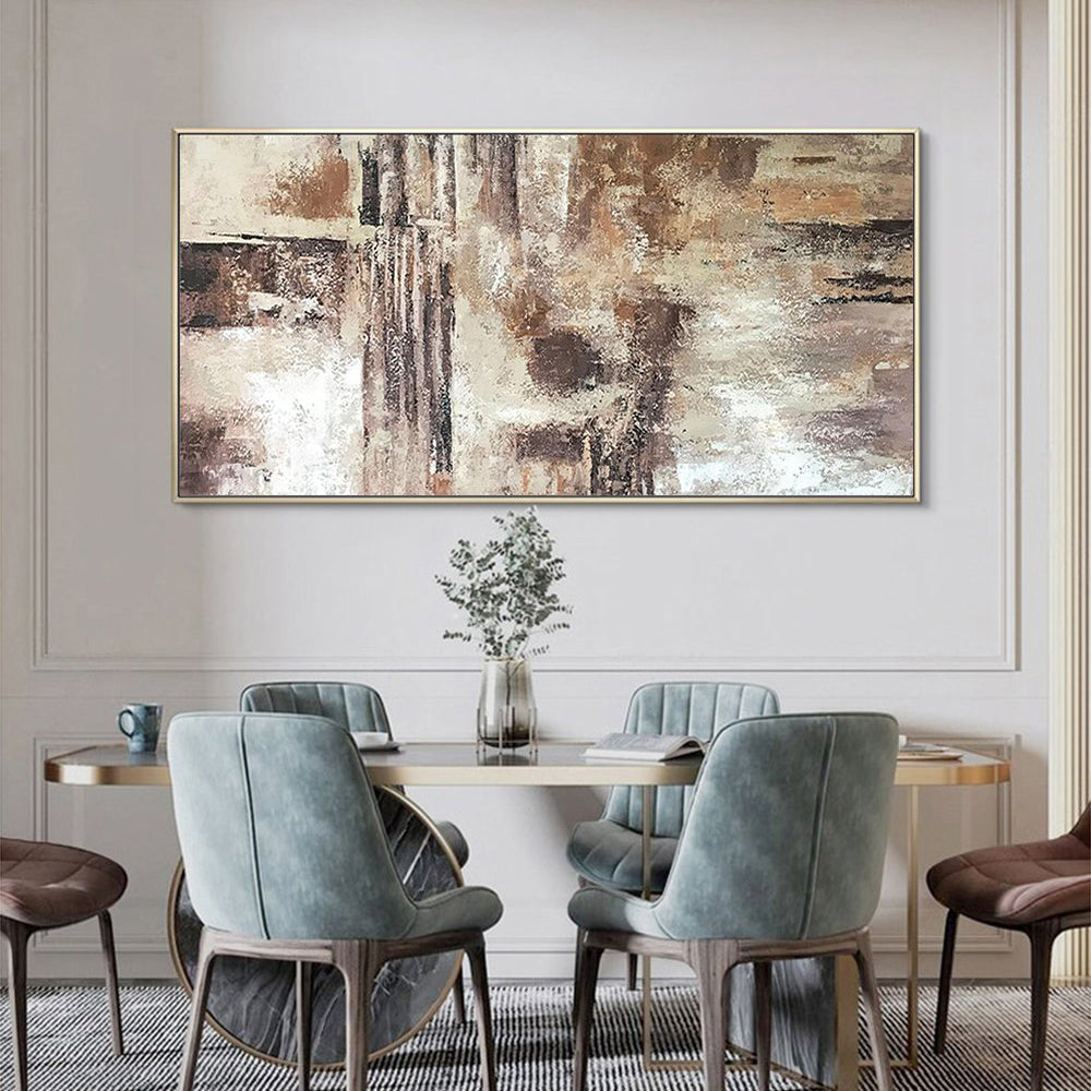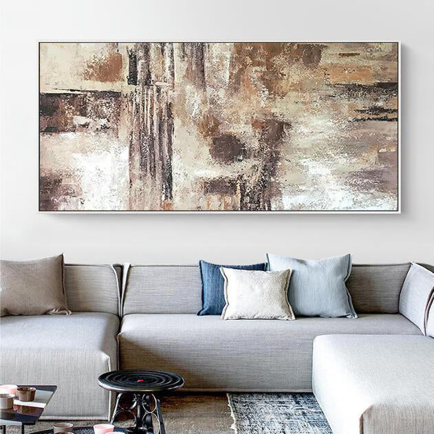 With the clever usage of various shades of brown and beige, a realistic desert-like atmosphere is created. This soft, yet robust colour scheme makes this handmade art piece complement any room!
