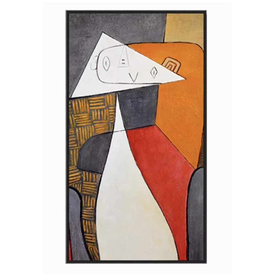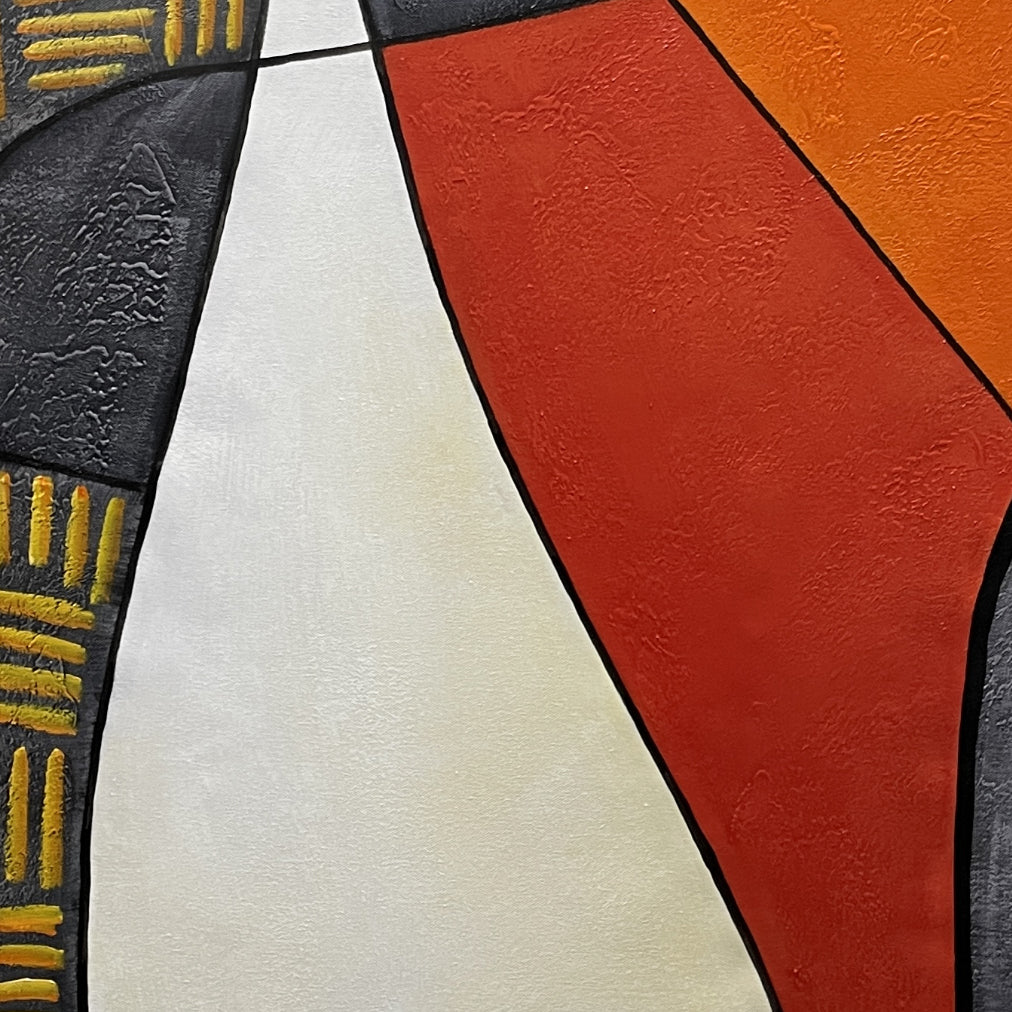 This happy abstract painting brings joy to any room or space! With its subtle and warm colours, it has the power to cheer anyone up! Inspired by Picasso's cubism painting style, this art piece has a professional yet jolly vibe.