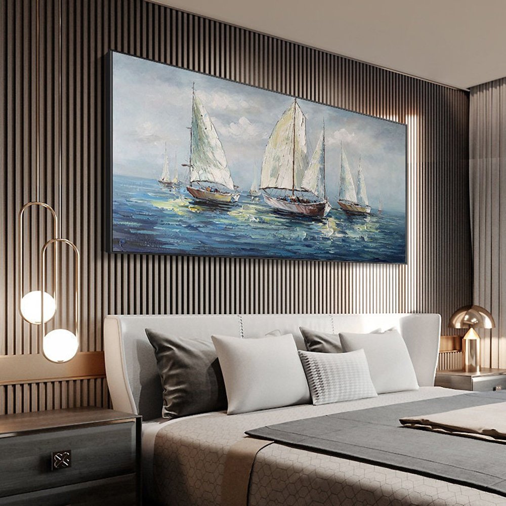 Companionship invites you to feel the gentle breeze and the fellowship of sailing friends. This artwork’s tranquil scene of sailboats on open waters adds a touch of nautical elegance to your home.