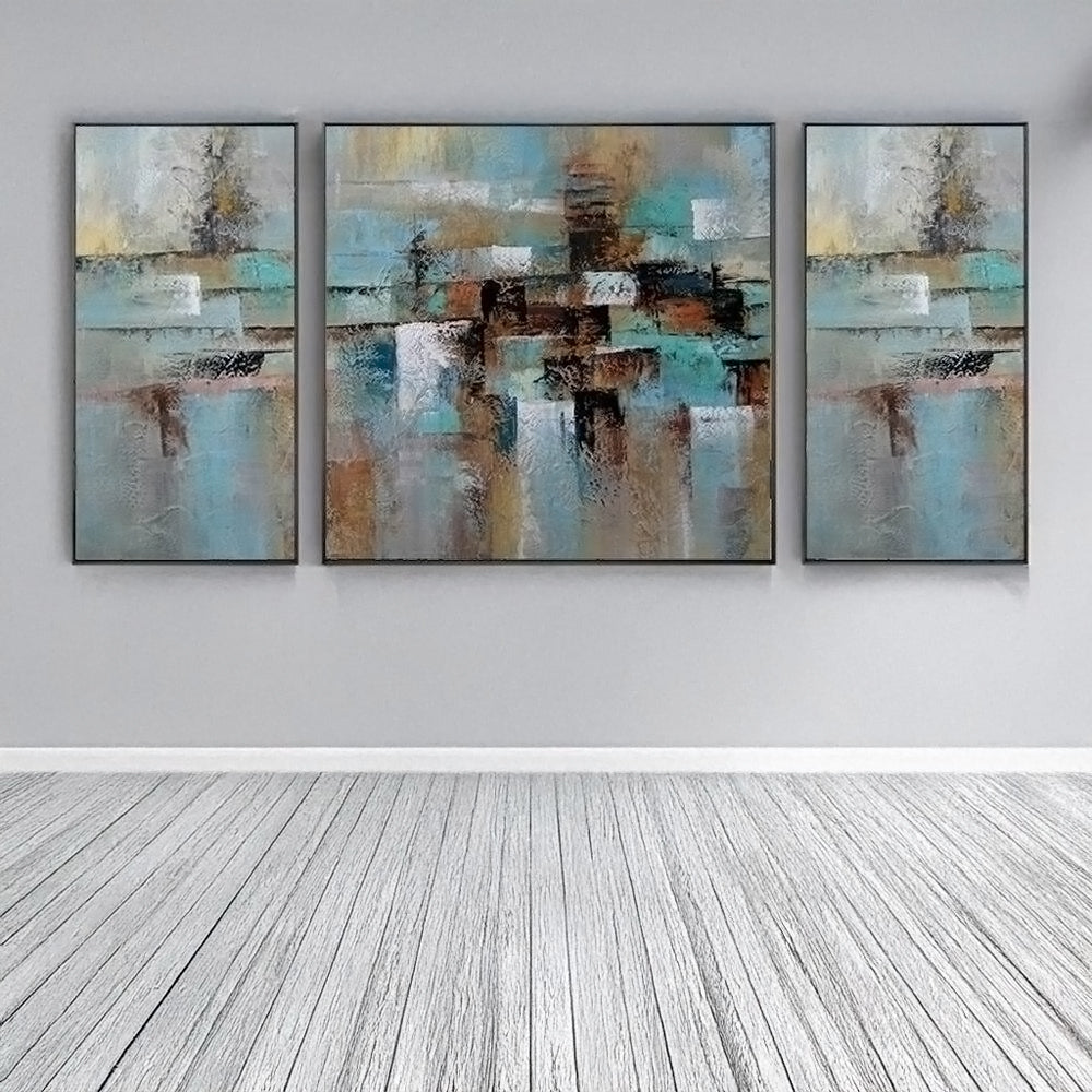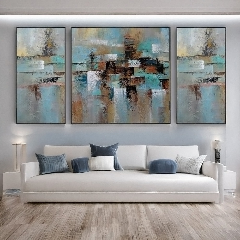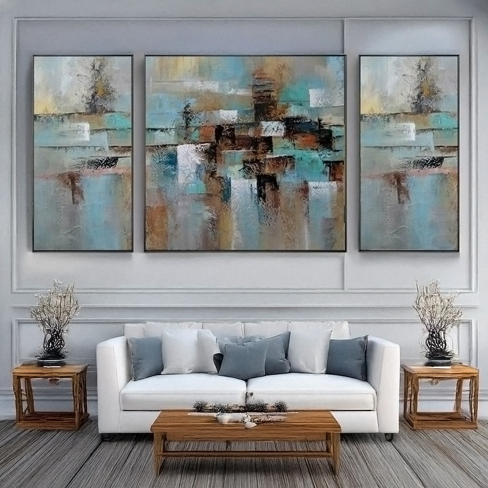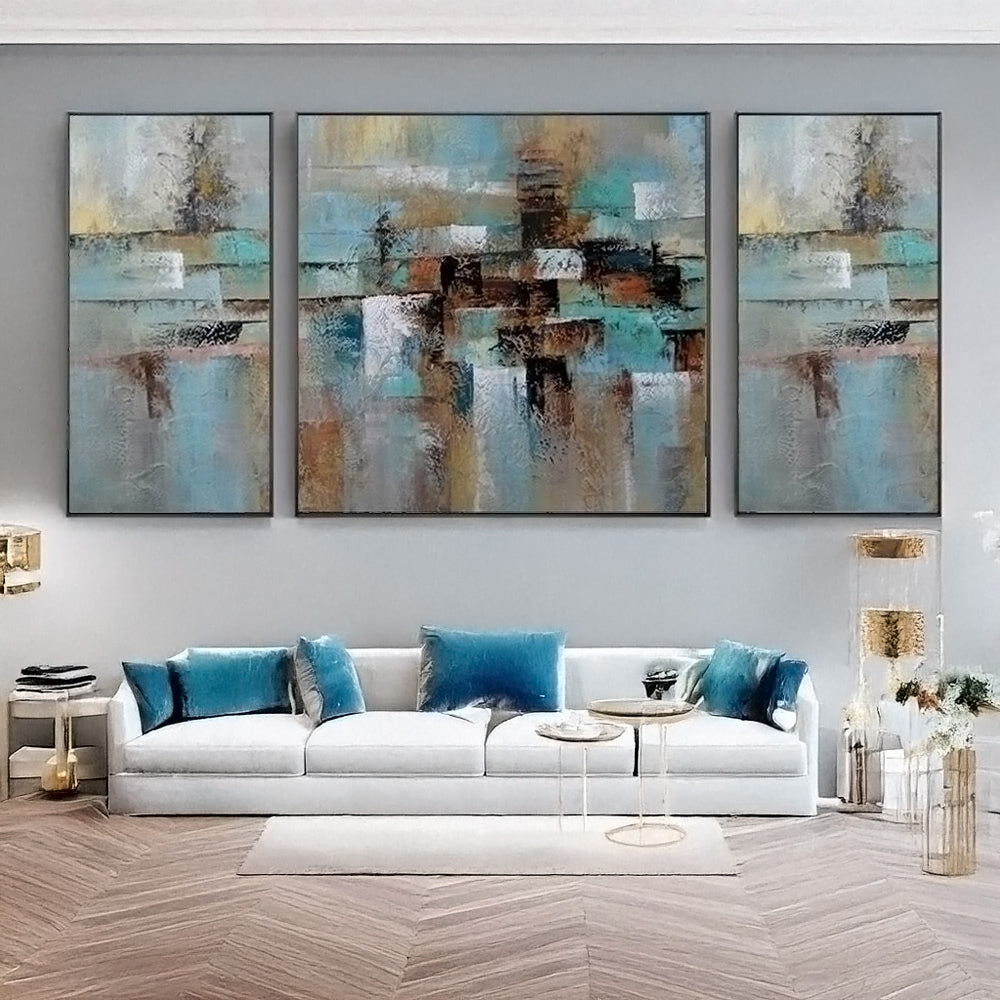 With the use of a special technique, this unique canvas set almost looks like it is covered in a beautiful layer of rust. Brown and blue colors dance along the canvas, giving this canvas set a dynamic and stunning atmosphere! ⁠