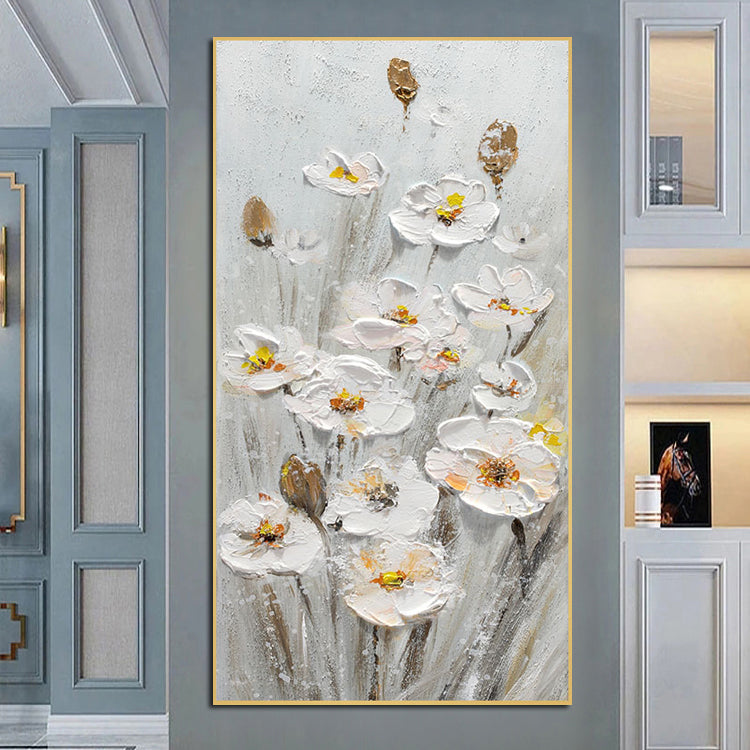 Lovely, white daffodils dangle beautifully on the gentle flow of the wind to create a merry sight. Through the use of various painting techniques, it almost seems as if the flowers dance right out of their canvas, creating a dynamic, floral atmosphere wherever it's portrayed!⁠