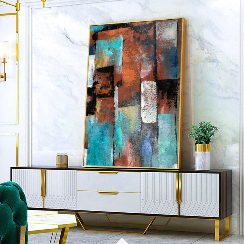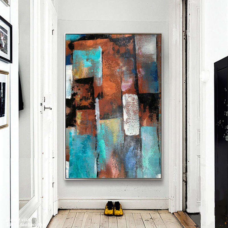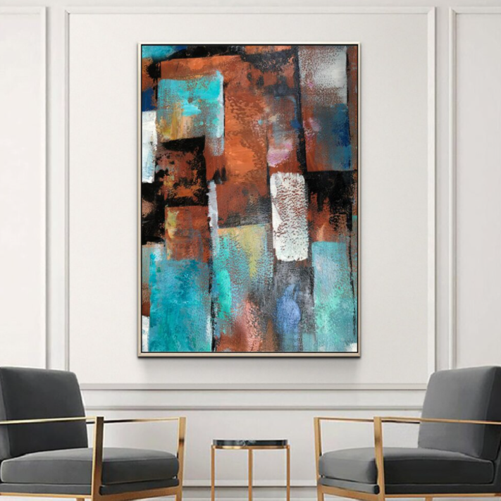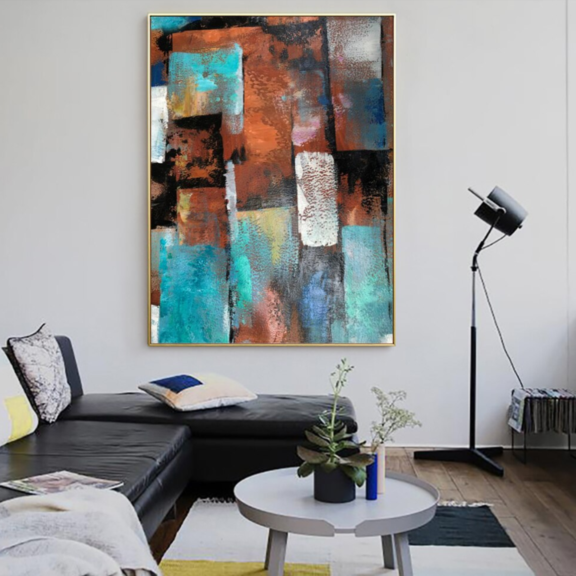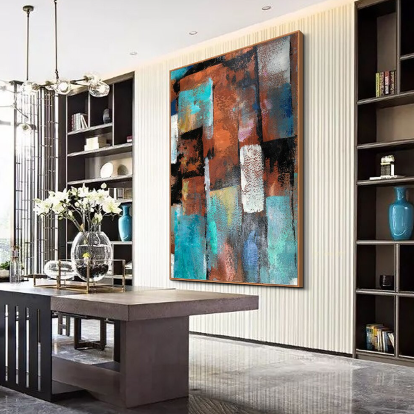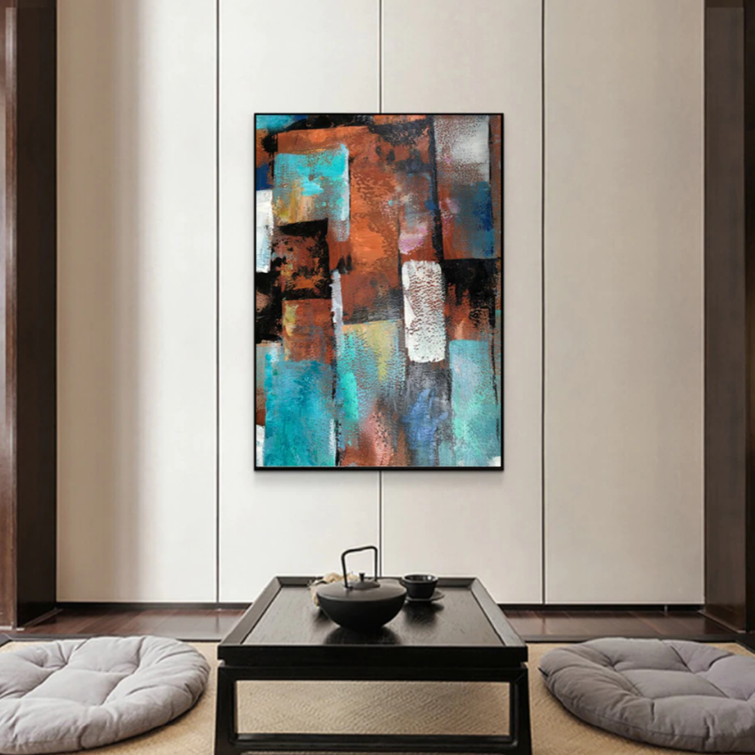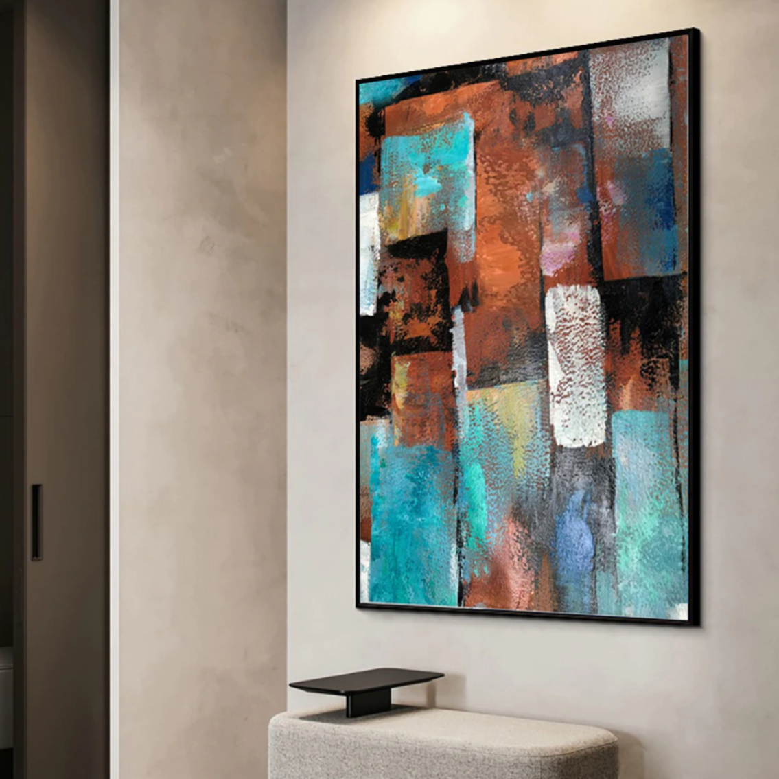 What makes this hand-made painting so unique is that each part is divided into unequal squares which all tell their own story. While simultaneously the bigger picture tries to tell another story... What story do you see? ⁠