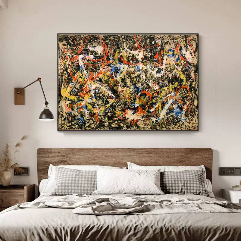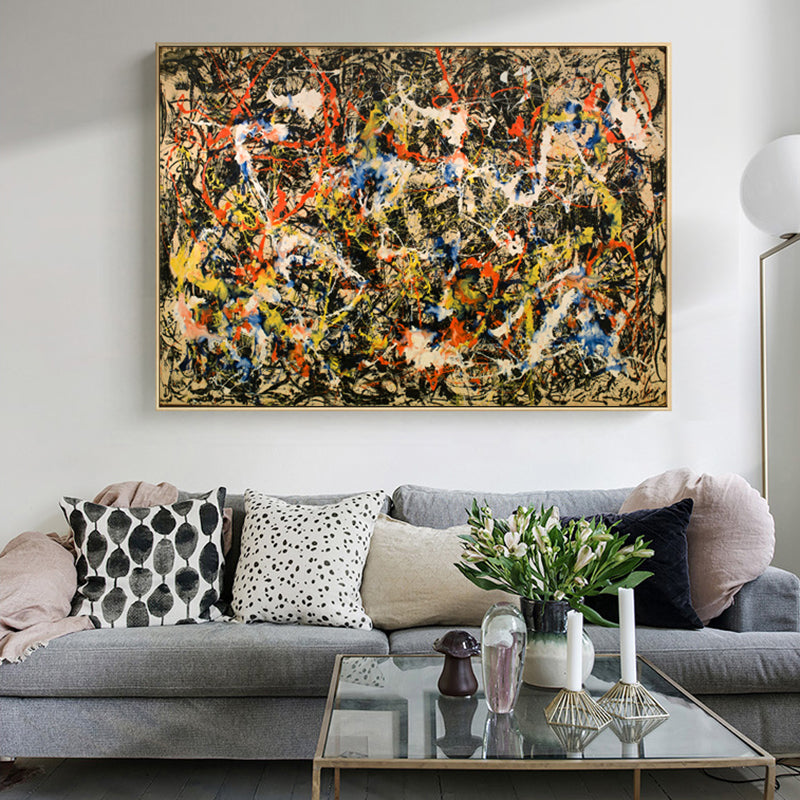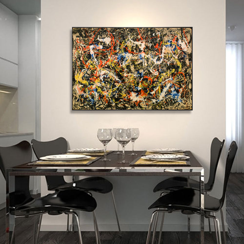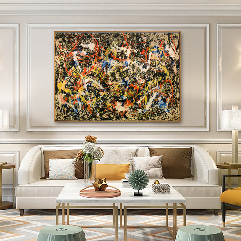 In 'Division', colors swirl and mix in a lively chaos, creating an exciting and eye-catching composition. This stunning artwork invites you to explore its intriguing divisions, making you discover something new anytime you look at it.