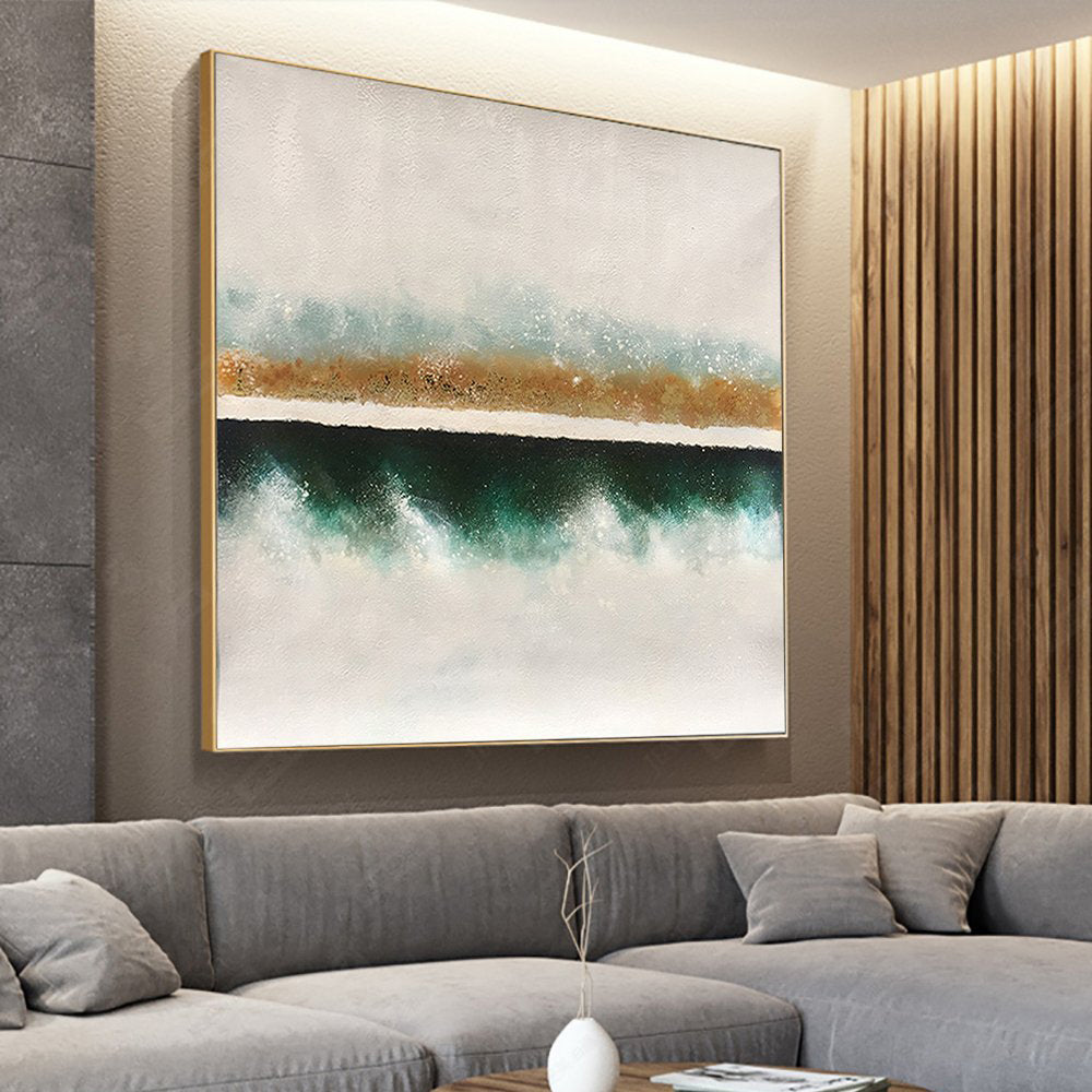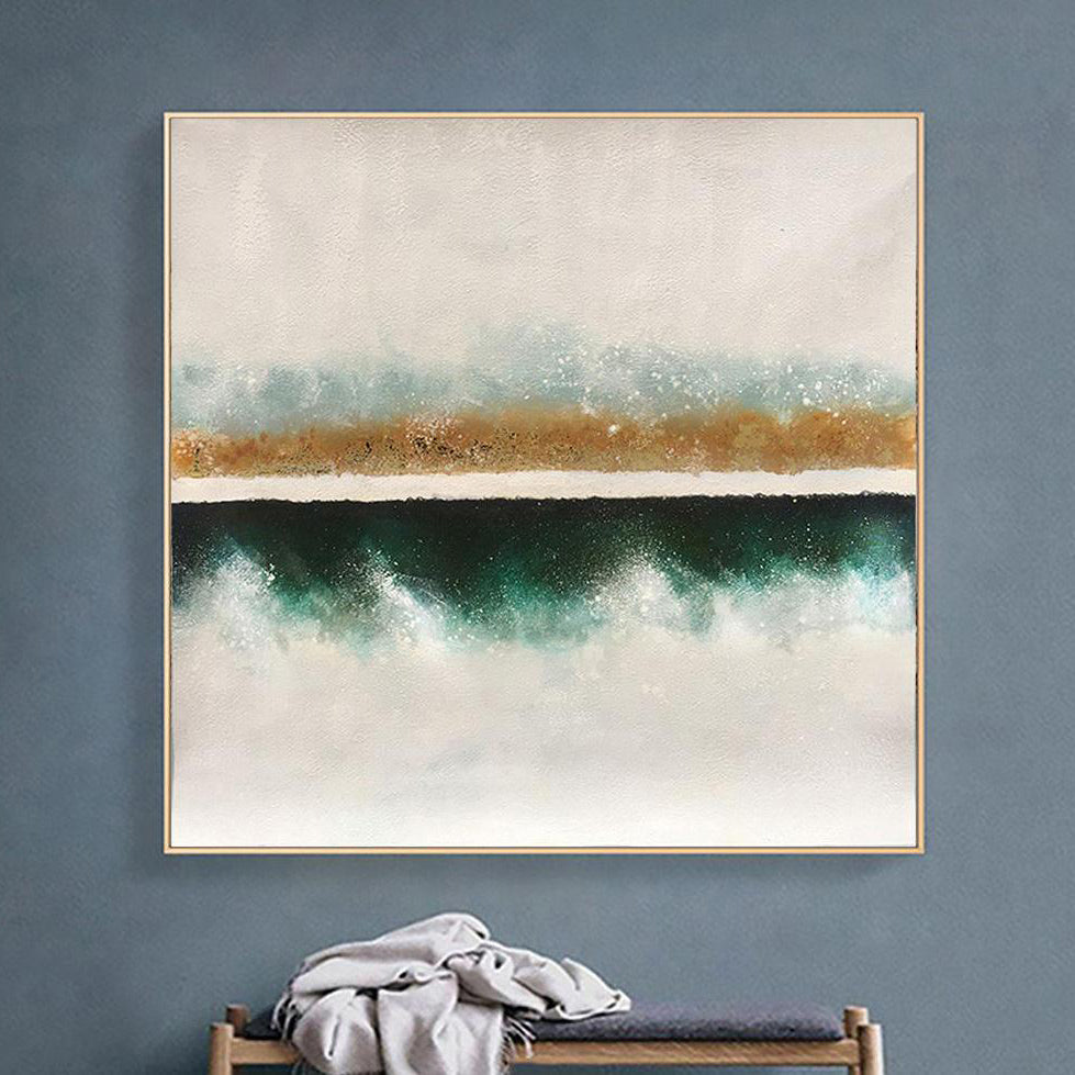 Where grass turns into hay, and seeds become life. Farms have always been a vital part of our society. Just like art! This painting brings you both with a great finesse and beauty! The horizontal white stroke in the middle divides the painting into two equally stunning parts that seem to float on top of each other.