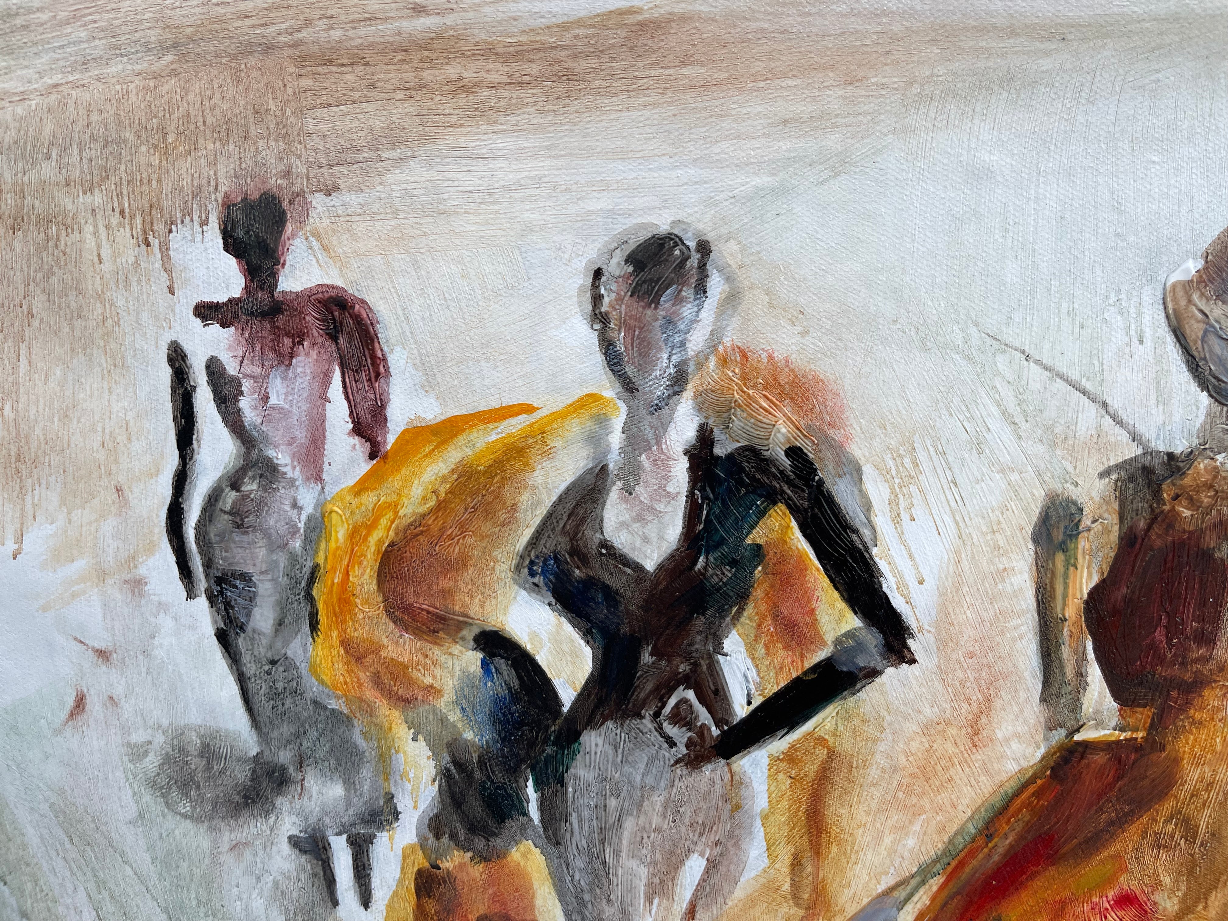 Translated from Spanish, this unique artwork is titled: 'Street Party' or 'Block Party'. These parties are very common in Latin areas and are full of music, dancing, and good times! This abstract artwork captured the essence of these parties in an intriguing, stylish way.