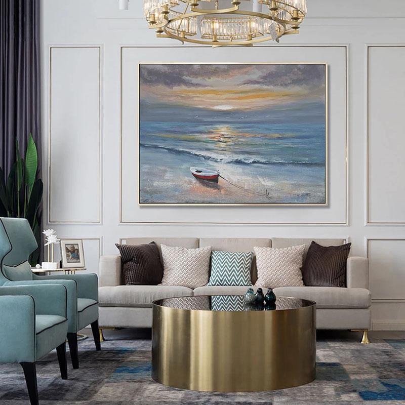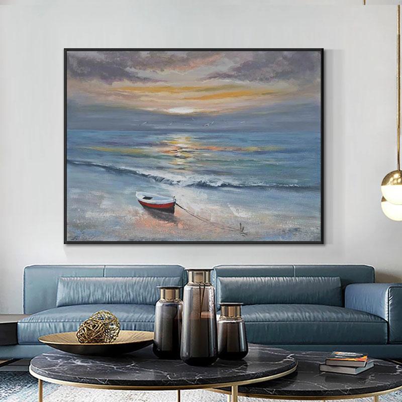 This beautiful art piece tells a story of a lost sailor, gone to explore the vast ocean. Its beautiful composition leads you straight into the colourful, mesmerizing horizon.