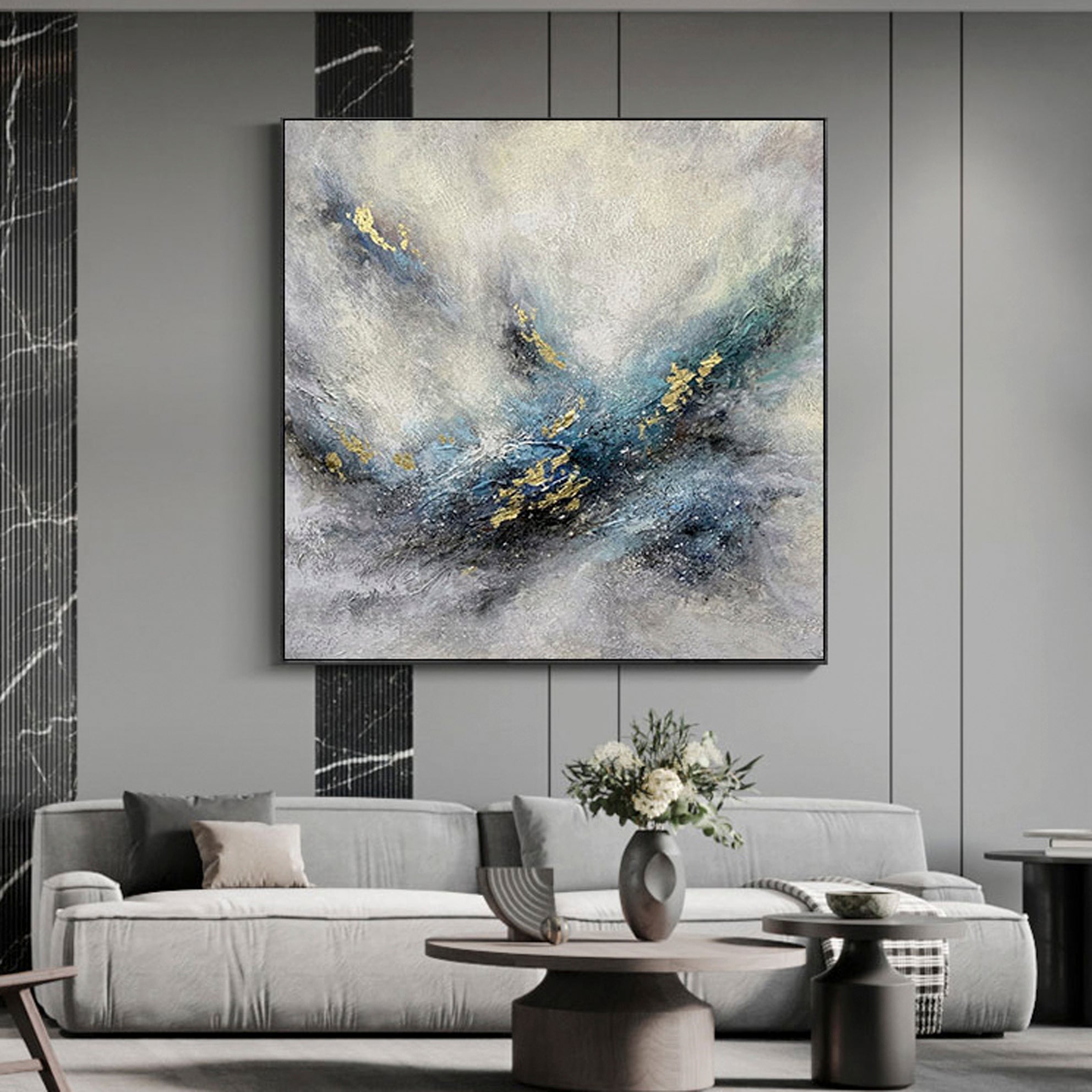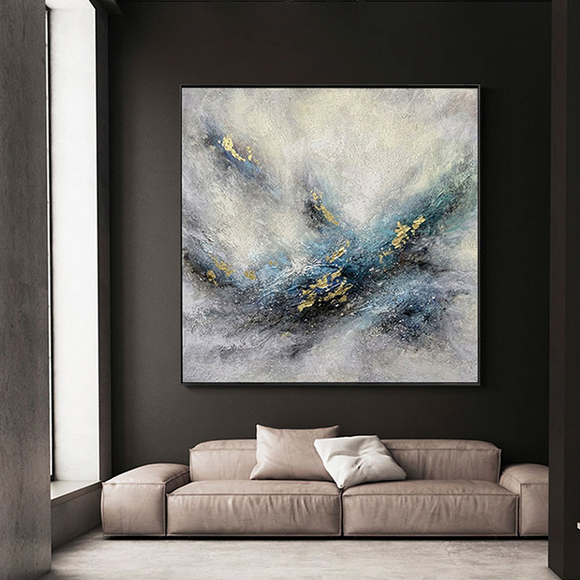 Insprired by our infinite universe, this dynamic, modern art piece is a true eye-catcher! Gaze upon the endlessness of the milky way and its stunning details! Creates an impressive and modern atmosphere wherever it is portrayed!
