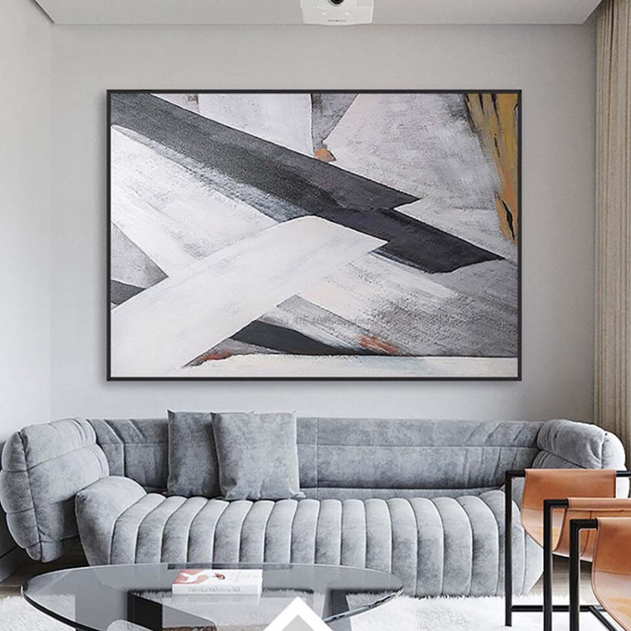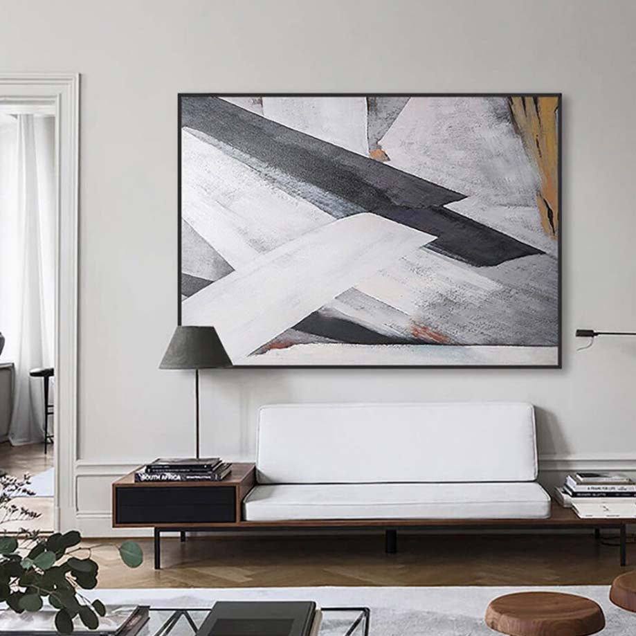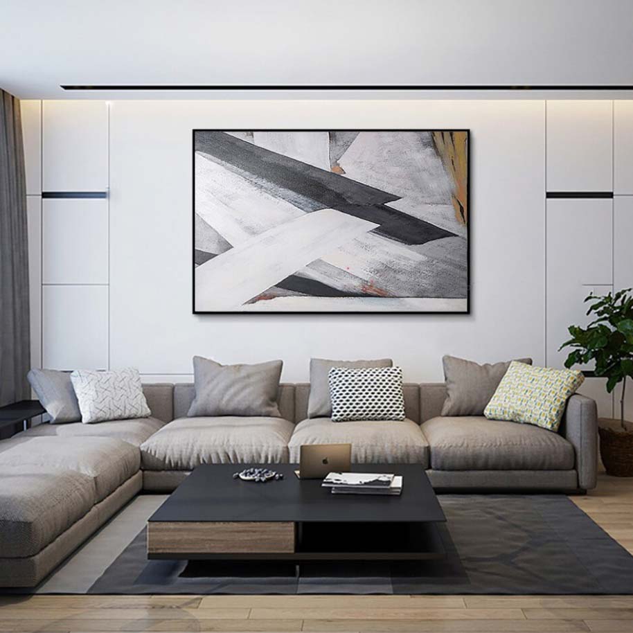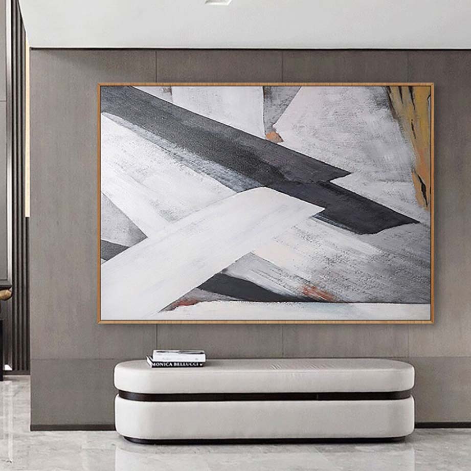 With wondrous, wide diagonal strokes of paint on top of each other, a unique 3D effect is created! Consisting of universal and contrasting colours, this amazing abstract art piece will complement any type of interior! ⁠