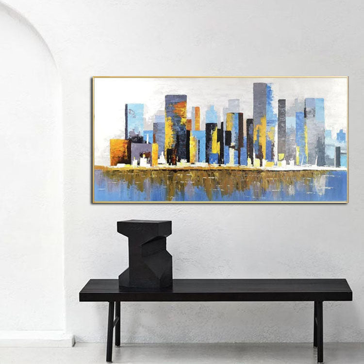 We just can't get enough of this amazing art piece! With a unique painting style and an even more unique color palette, this piece honors the ever-buzzing Manhattan! Its multiple colors can accentuate any home interior!