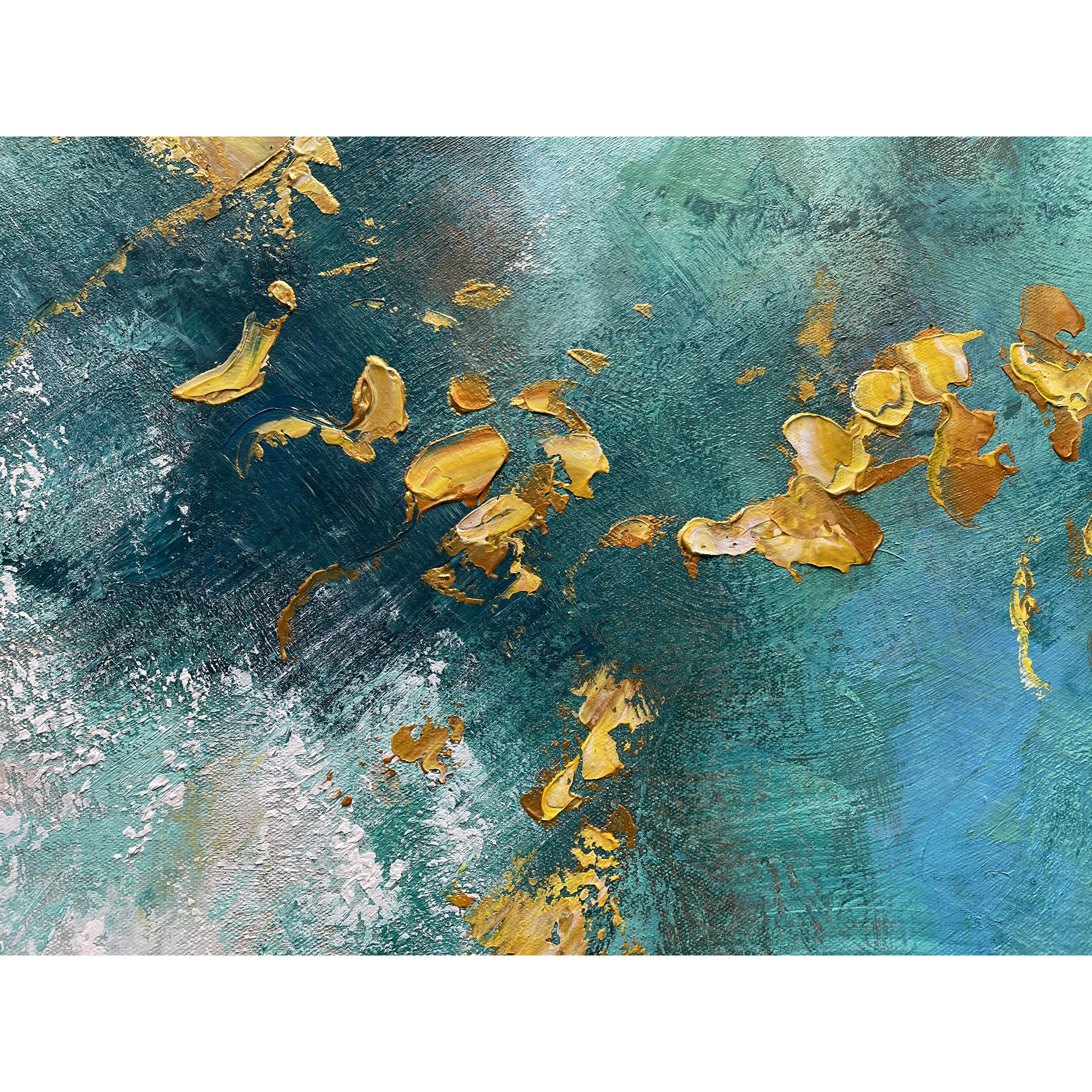 The sheer power and beautiful mysticalness of a meteor condensed in one abstract masterpiece! With its beautiful texture, sophisticated use of colours and warm feeling, this painting lights up any room or space!