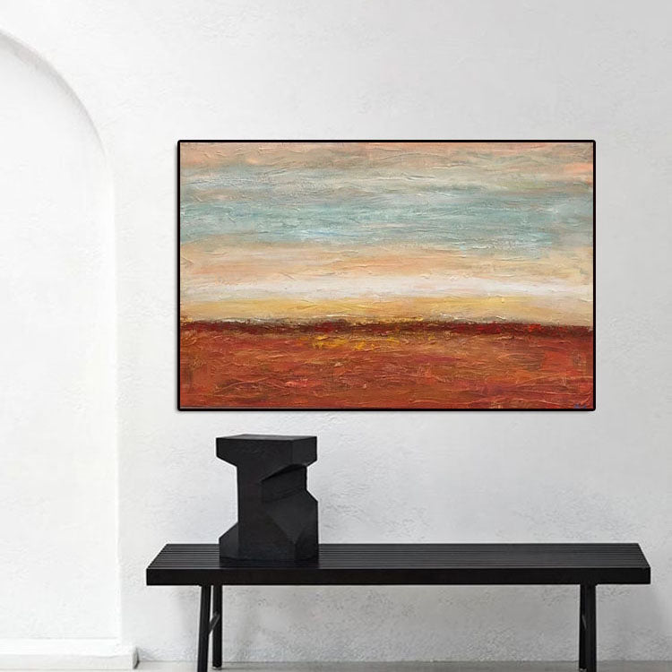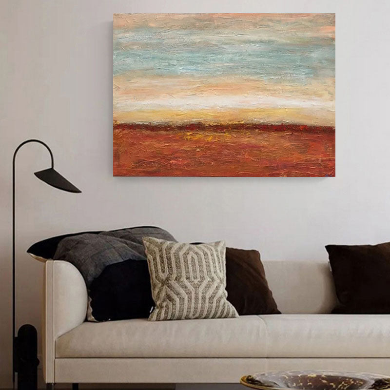 This unique, subtle artwork displays a peaceful meadow at daybreak. The different colors work together beautifully, creating a serene and stylish composition, suited for any type of home interior!