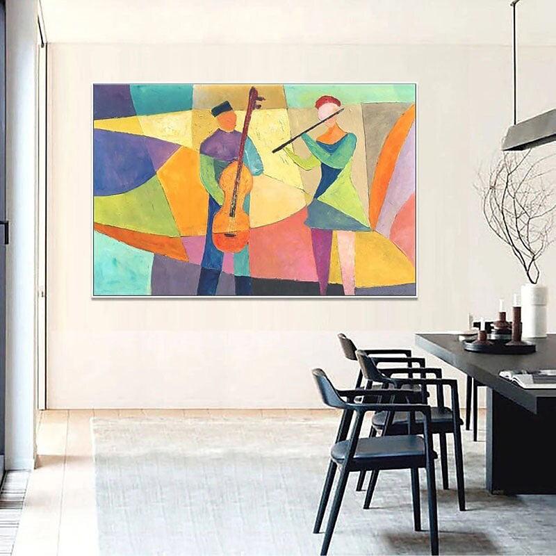 Celebrate the beauty of a musical performance with this colorful painting. The abstract figures and vibrant hues bring a sense of harmony and joy to your home.