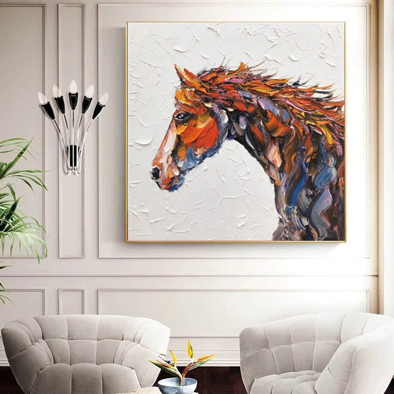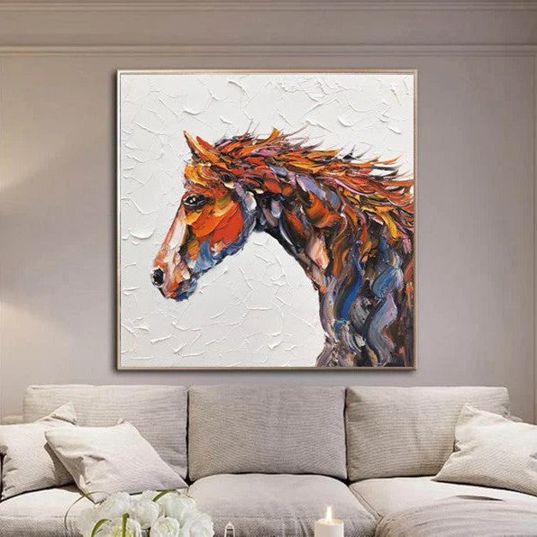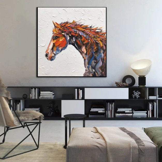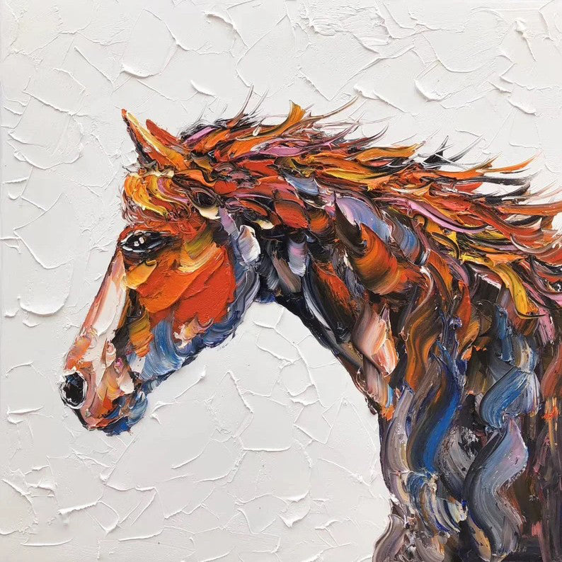 Meet Nicholas, the proud and fiery soul of the stable. Painted with bold strokes and glowing colors, he carries the spirit of wind and wild fields. This isn't just a horse. It's a character, full of quiet strength and fierce charm. Nicholas is ready to run, even on your wall.