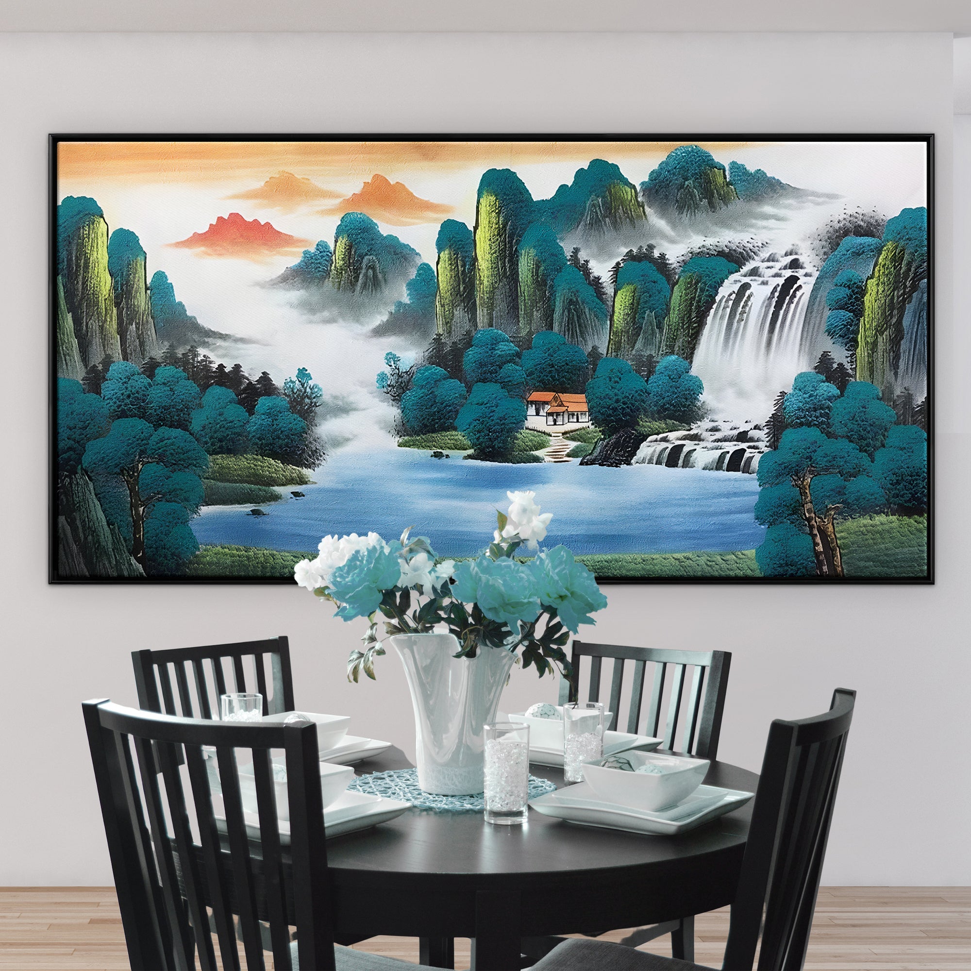 This Japanese-inspired painting offers an escape to a world of peace and calm, where nature's beauty reigns supreme. Let the dreamy composition and unique painting style surprise you, time and time again.