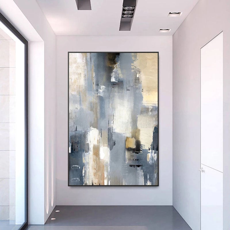 Dive into the subtle colors of this abstract modern artwork just like real porpoises. Its mystic composition leaves a lot to the imagination while creating a soothing atmosphere. Also, its soft colors work together beautifully with its surroundings.