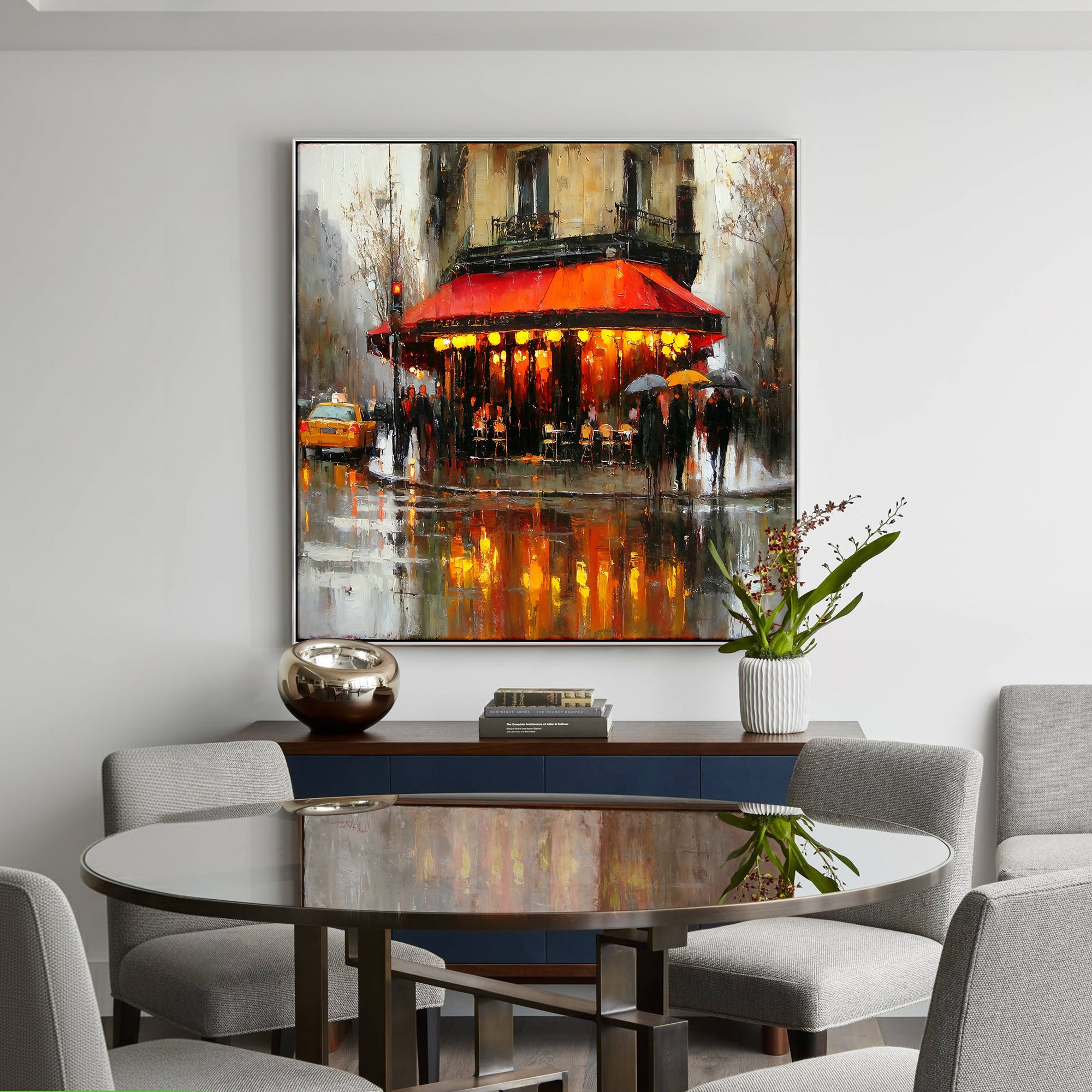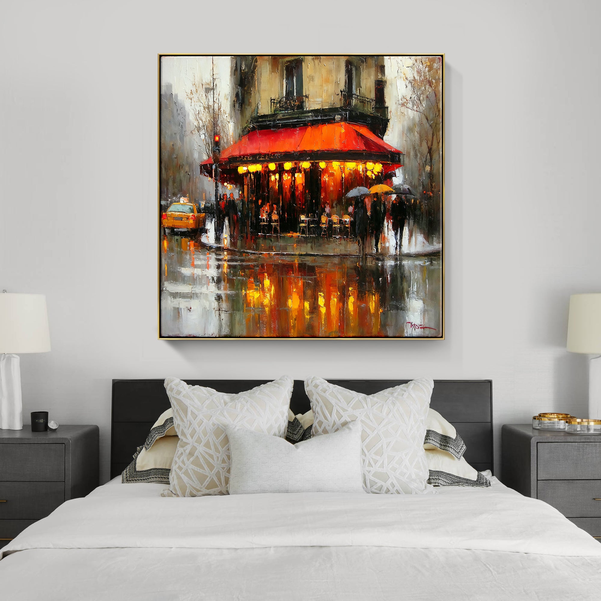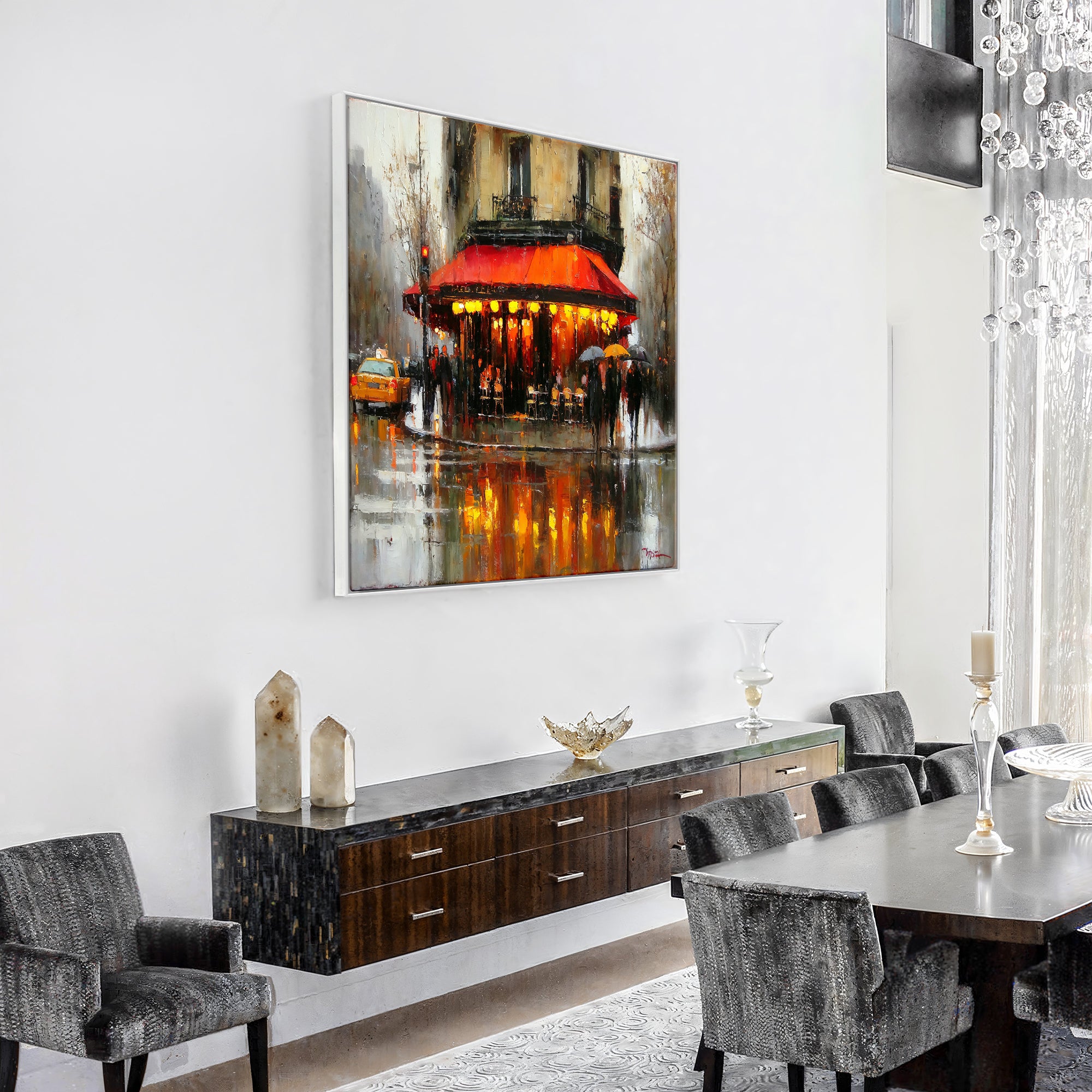 Express shipping is free for all paintings, with 100% insurance coverage. Paintings are carefully packaged to prevent damage. Framed paintings ship via DHL Express; rolled canvas paintings via FedEx and UPS Express.
