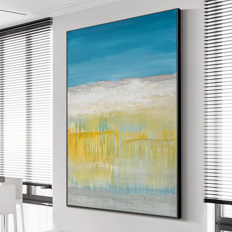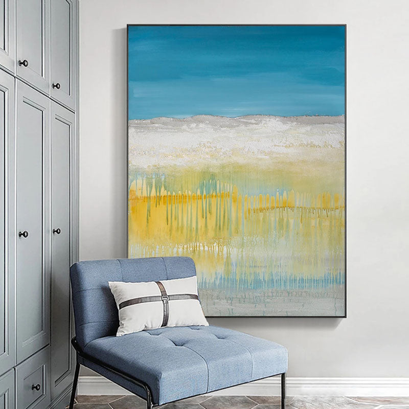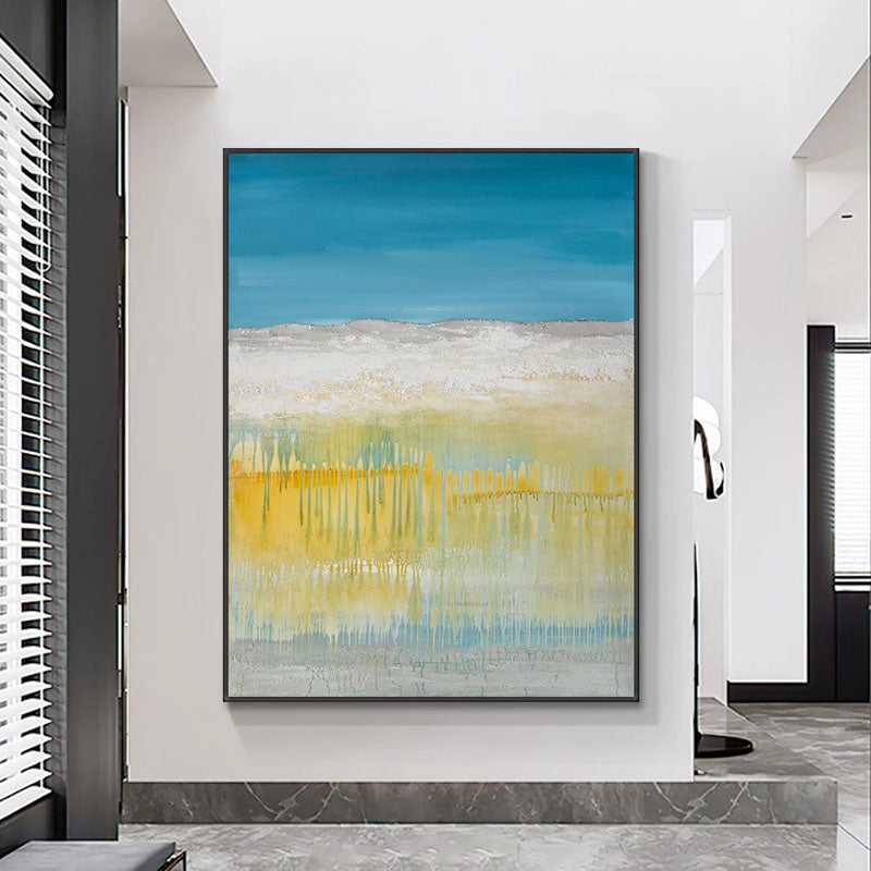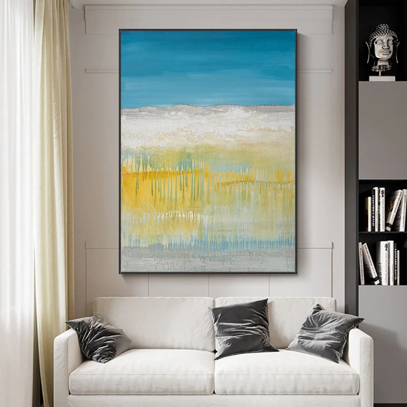 Dive into the serene charm of Salty Waters, where bold blue skies meet golden reflections. The unique dripping technique brings life to the canvas, creating a mesmerizing sense of movement and tranquility. A true ocean-inspired masterpiece!
