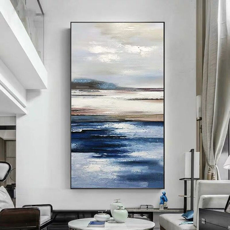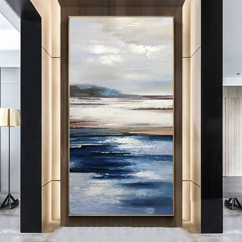 Shallow Shores captures the gentle meeting of sea and sky with soothing tones of blue and beige. This serene piece invites calmness into your home, creating the perfect atmosphere for reflection and relaxation. Bring the calm beauty of the coast into your space.