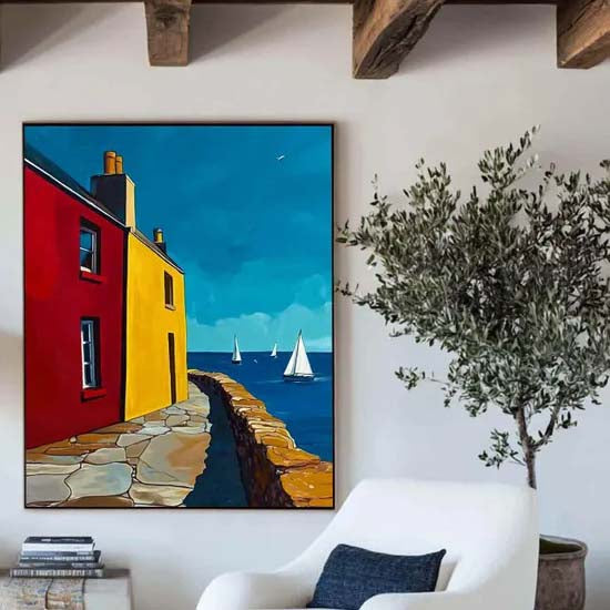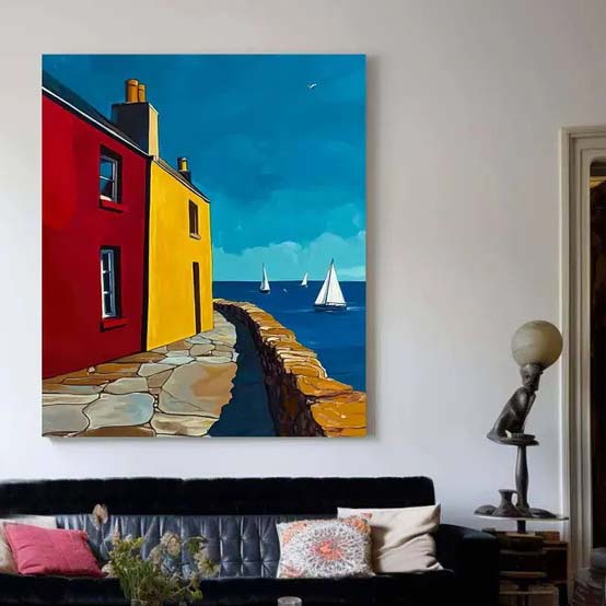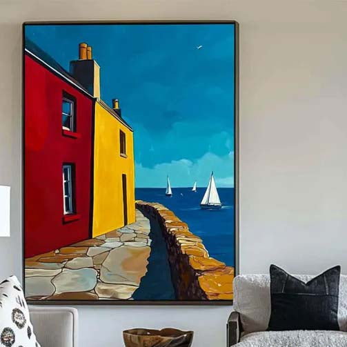 Express shipping is free for all paintings, with 100% insurance coverage. Paintings are carefully packaged to prevent damage. Framed paintings ship via DHL Express; rolled canvas paintings via FedEx and UPS Express.
