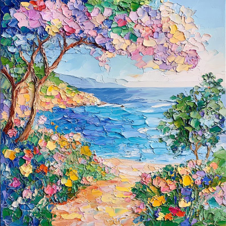 Express shipping is free for all paintings, with 100% insurance coverage. Paintings are carefully packaged to prevent damage. Framed paintings ship via DHL Express; rolled canvas paintings via FedEx and UPS Express.