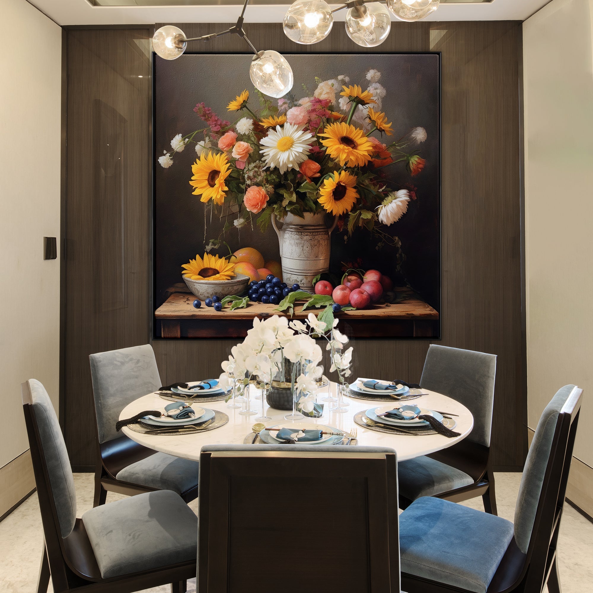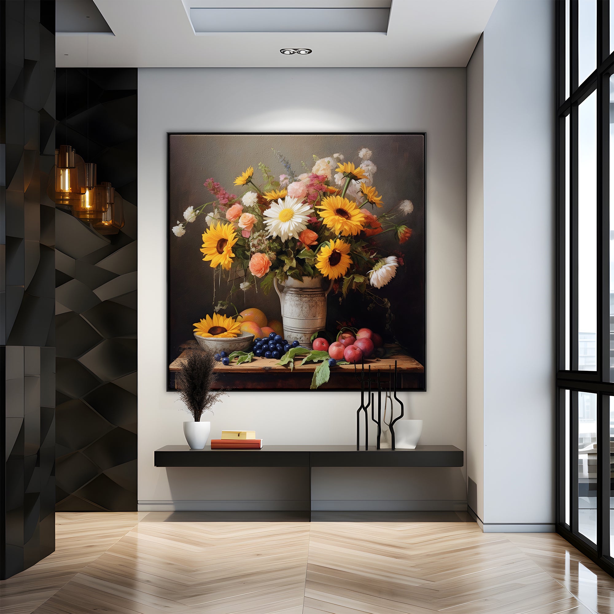 It's as if a living bouquet graces your wall. This stunningly realistic painting captures the essence of fresh flowers, making your space come alive with their vibrant colors and fragrant charm.