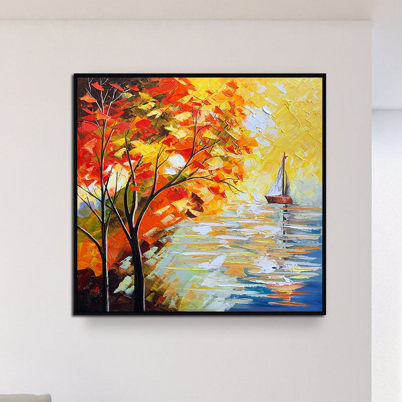 Express shipping is free for all paintings, with 100% insurance coverage. Paintings are carefully packaged to prevent damage. Framed paintings ship via DHL Express; rolled canvas paintings via FedEx and UPS Express.