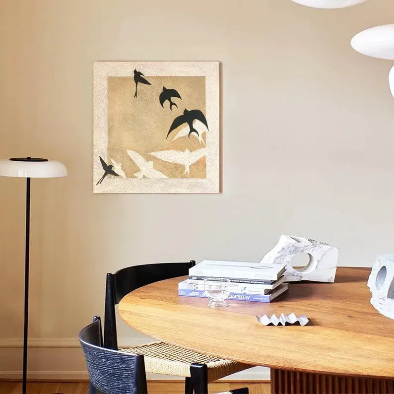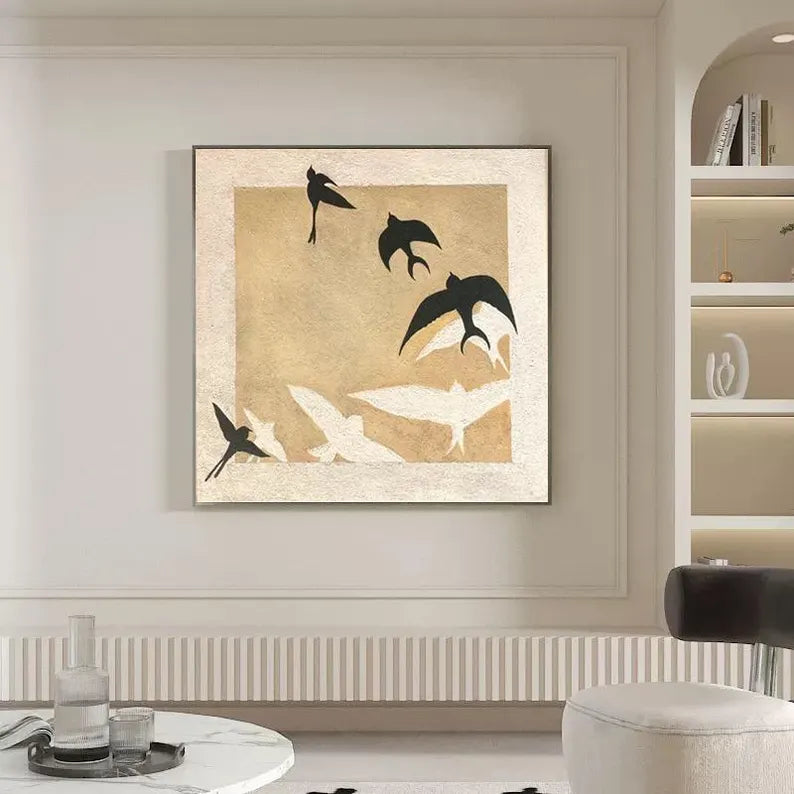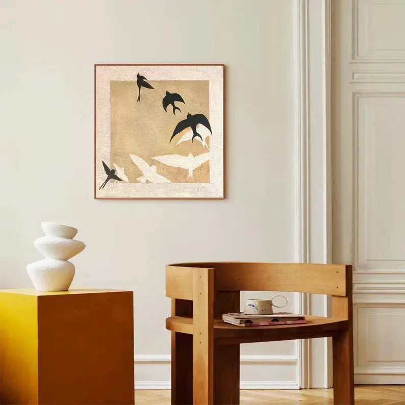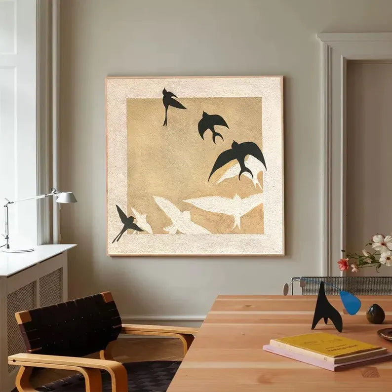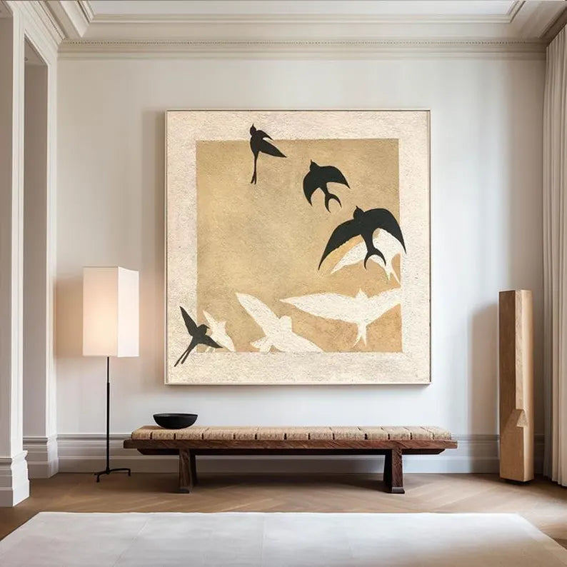 Express shipping is free for all paintings, with 100% insurance coverage. Paintings are carefully packaged to prevent damage. Framed paintings ship via DHL Express; rolled canvas paintings via FedEx and UPS Express.