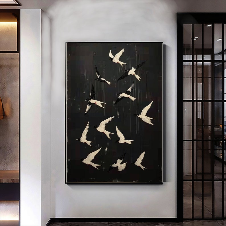 Express shipping is free for all paintings, with 100% insurance coverage. Paintings are carefully packaged to prevent damage. Framed paintings ship via DHL Express; rolled canvas paintings via FedEx and UPS Express.