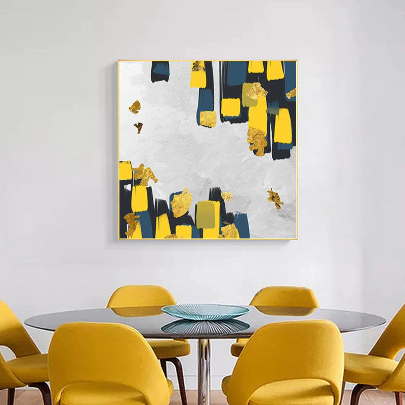 The Hive buzzes with energy and inspiration. This abstract masterpiece, influenced by the intricate patterns of a bee hive, combines golden tones and bold shapes to create a lively yet balanced aesthetic. Perfect for adding a vibrant, nature-inspired flair to any space.