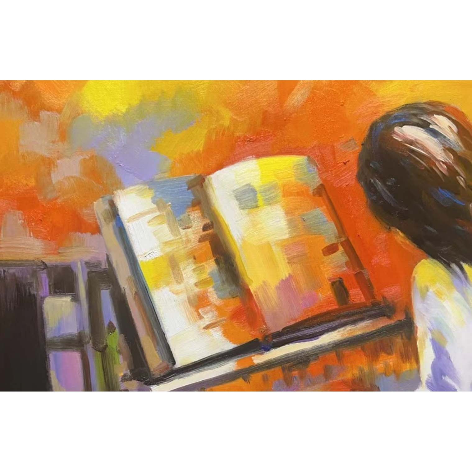 When we look at this wonderful painting, we can almost hear the music flowing out of the canvas. With a captivating color scheme and a great impressionistic style, this lady pianist will steal your heart! Can you make out what she's playing?