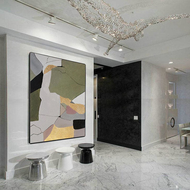 The Parade dazzles with its vibrant hues and bold shapes, creating a captivating visual journey. This abstract masterpiece adds a touch of sophistication and energy to any room, perfect for those who love unique art pieces.
