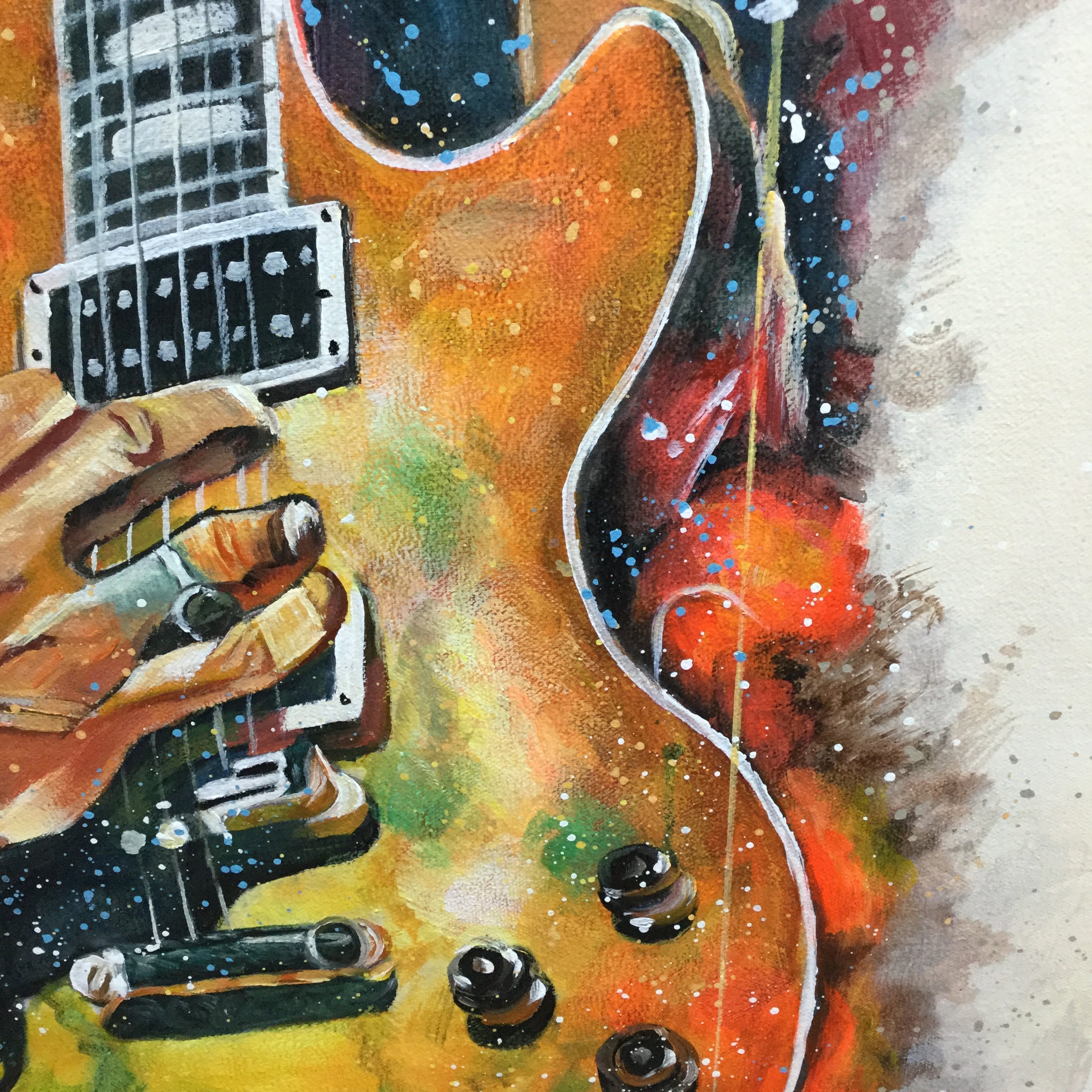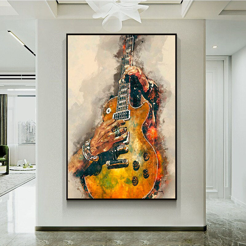 This painting brings the electrifying energy of a guitar solo to life. The rich colors and expressive design create a captivating piece that will enhance any room or space.