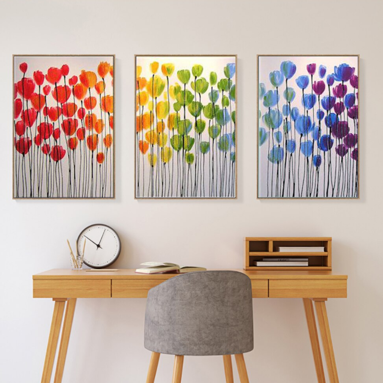 Did you know that the tulip is the national flower of the Netherlands? Inspired by these colorful fields, is this vibrant canvas set ‘Tulip’. The rainbow of colors makes this set always stand out, like a flower in a field!