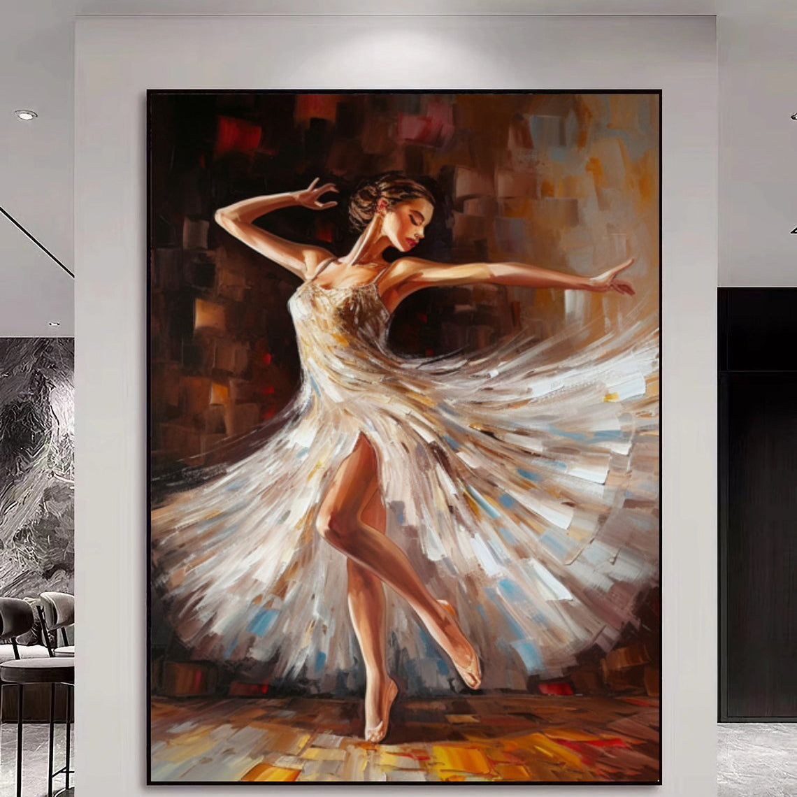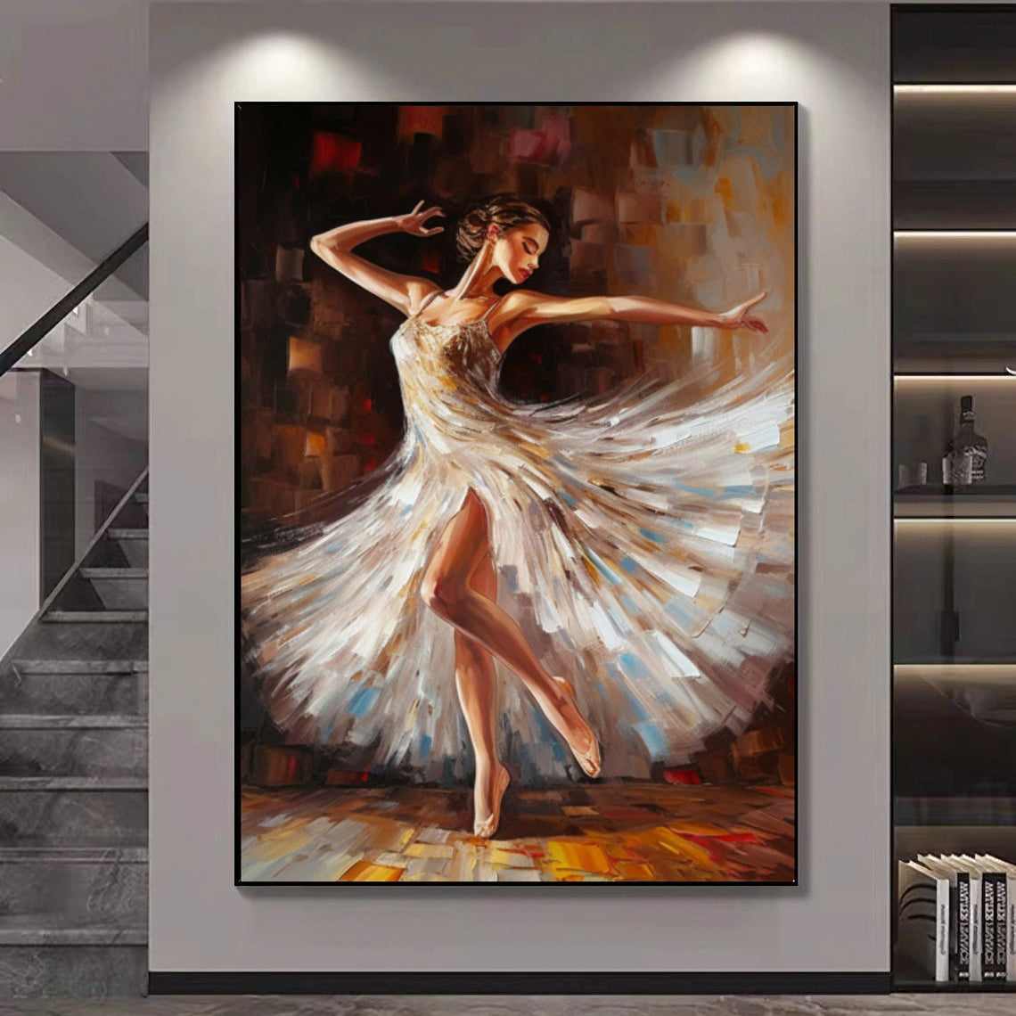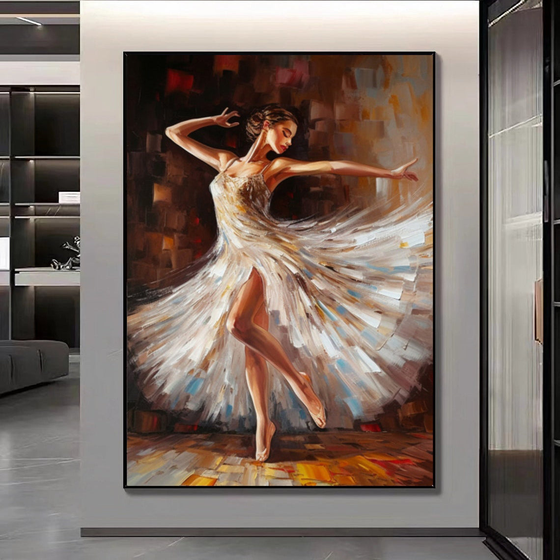 Feel the triumph of movement with ‘Victoria.’ This captivating piece showcases the beauty of dance in full bloom. The vibrant brushstrokes and flowing gown will transform your space into a gallery of elegance
