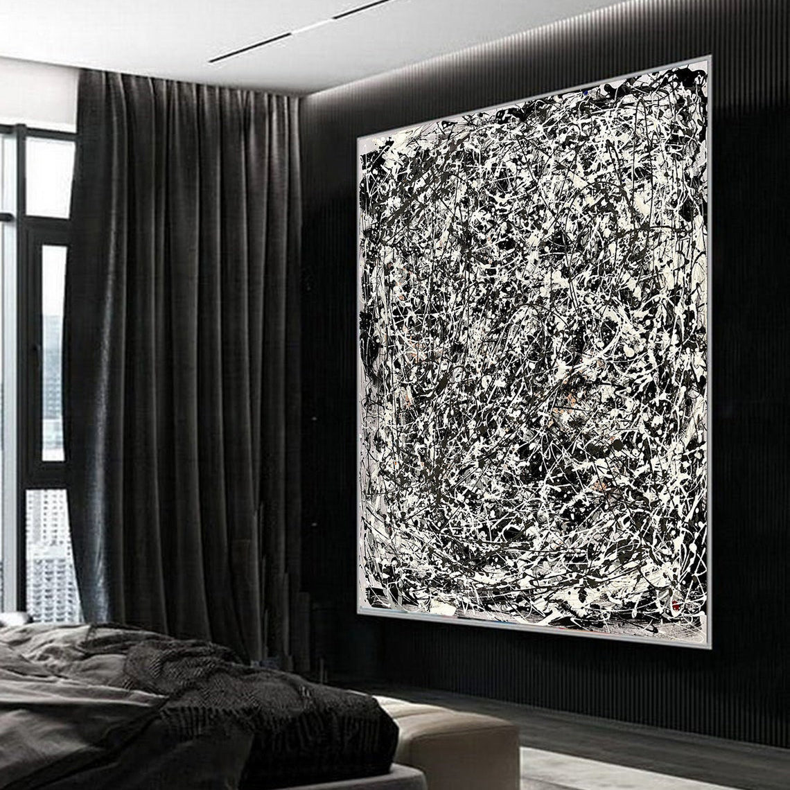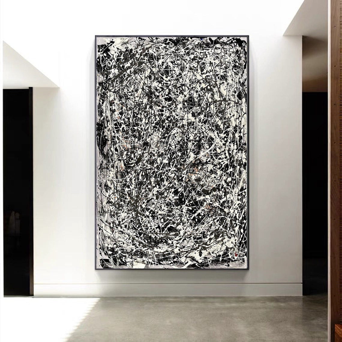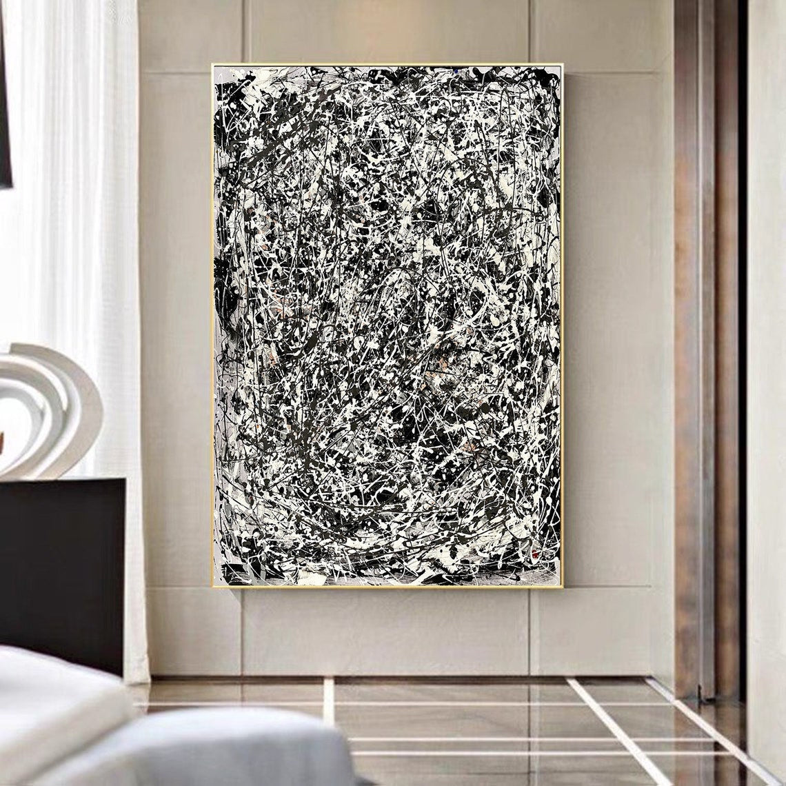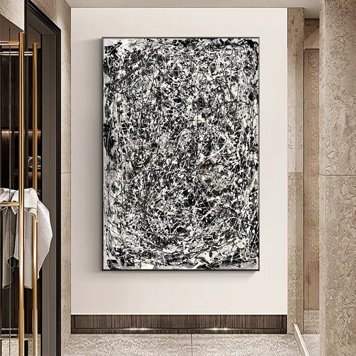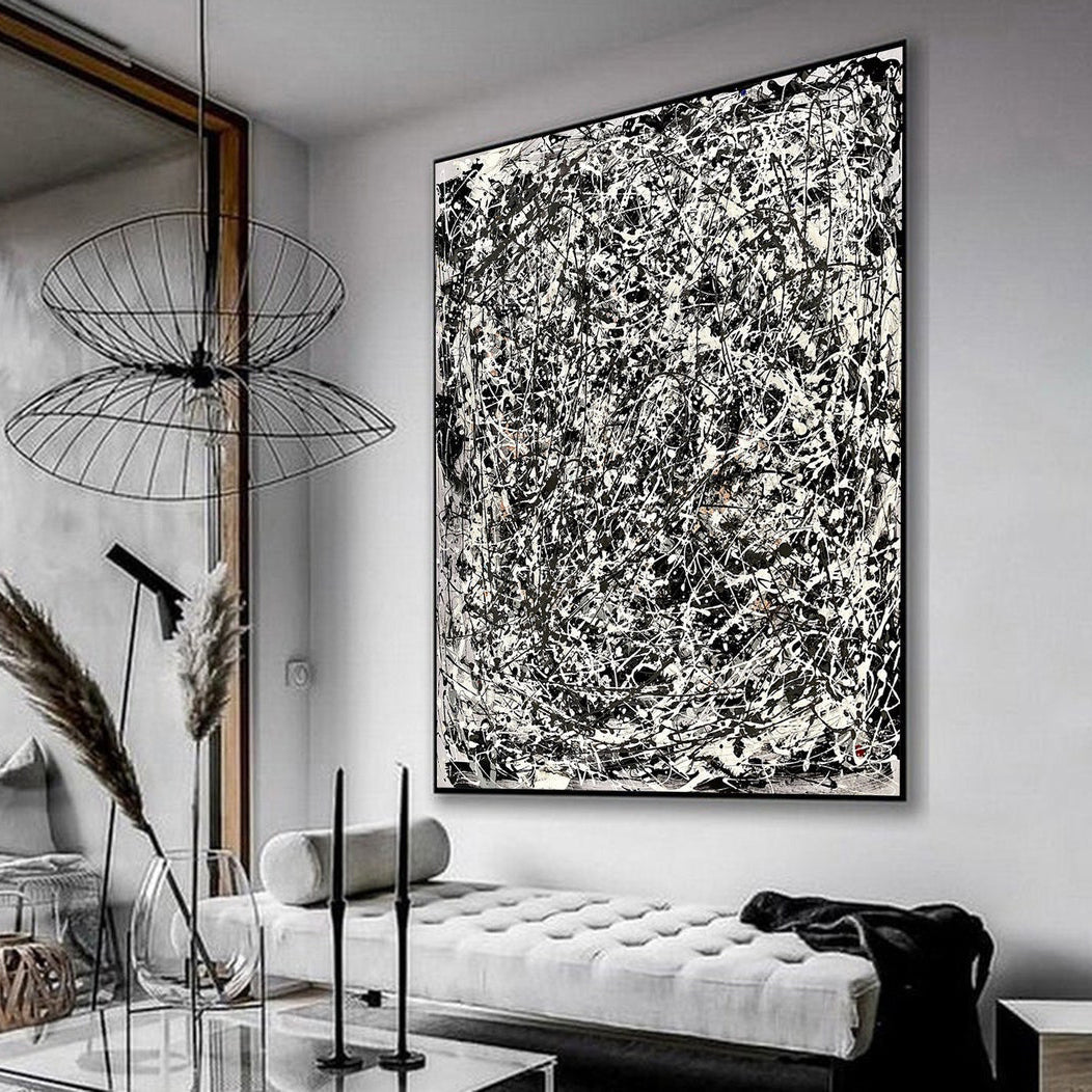 In Pollock's inspired 'Visionary', chaos becomes clarity. The dynamic black and white strokes create a hypnotic energy that’s perfect for making a modern, thought-provoking statement in your space.