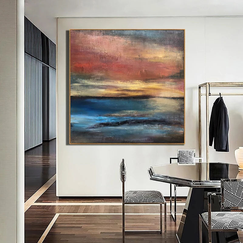 Feel the glow of Red Moon Waters. This stunning piece brings the warmth of a fiery sunset reflected on peaceful waters. Perfectly textured and masterfully balanced, it will add character and calm to any home interior.