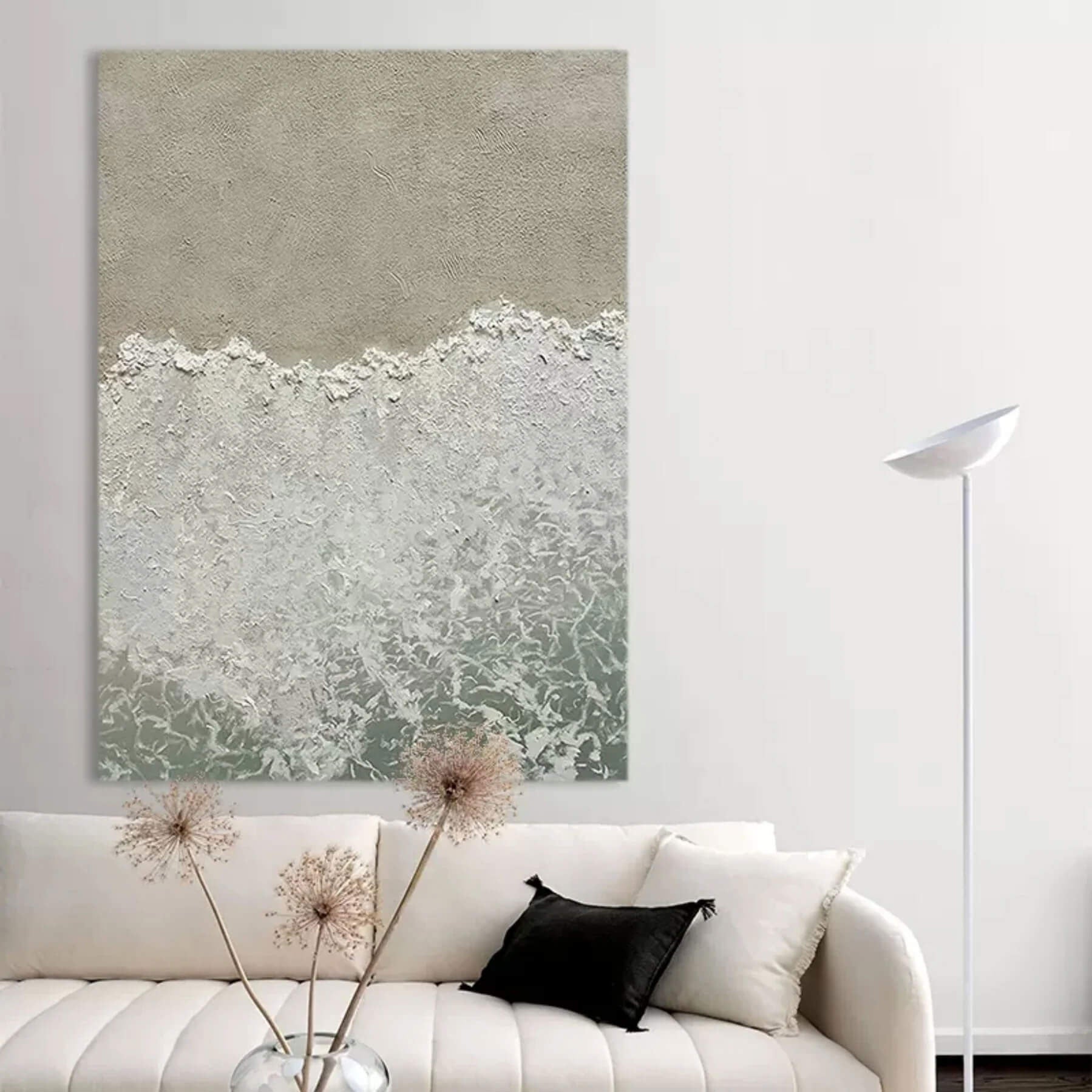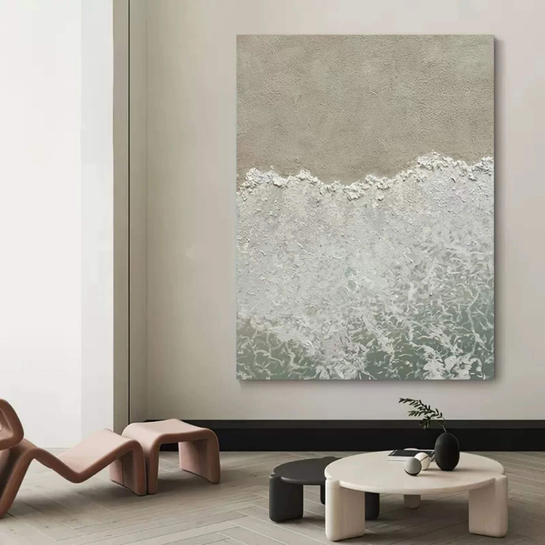 Waves captures the timeless dance of the ocean meeting the shore. The delicate textures and soft tones make it an ideal addition to any space that craves the serenity and rhythm of the sea. Let this piece be your daily escape to the beach.