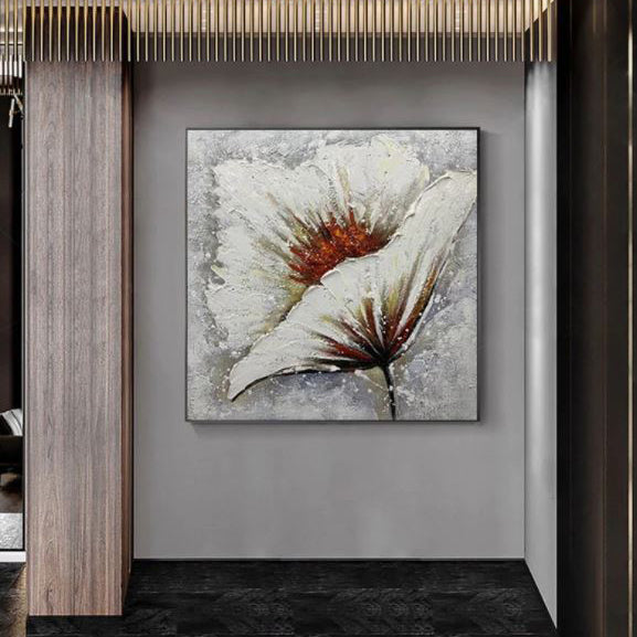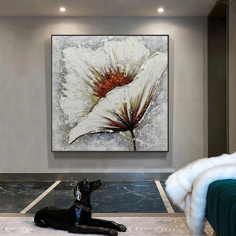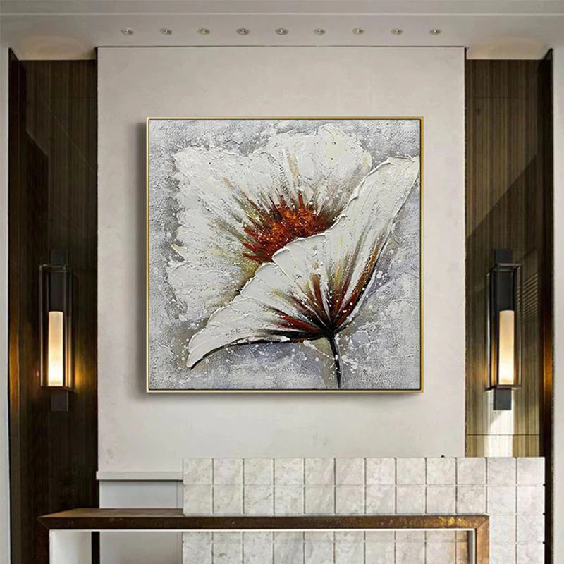 Rise and shine with this stunning floral piece. The bold texture and warm hues of this painting capture a flower reaching for the sun, spreading light and beauty to any corner of your home.