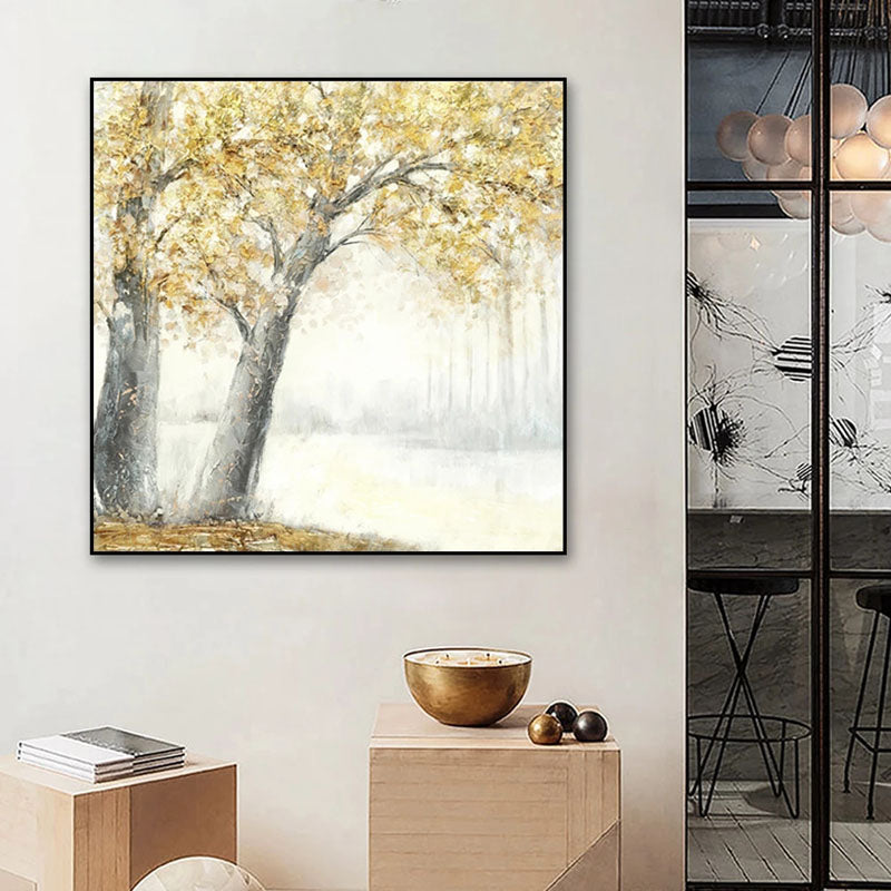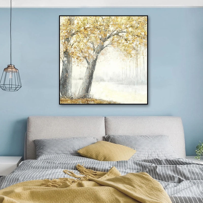 Willow's Creek invites you into a world of gentle calm. The delicate golden trees arching over soft whispers of mist create a scene of serenity. It’s a painting that speaks of quiet days and untold stories, perfect for turning your space into a peaceful haven